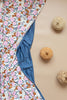 Pink + blue + rust fall floral print paired with a denim blue solid reverse.