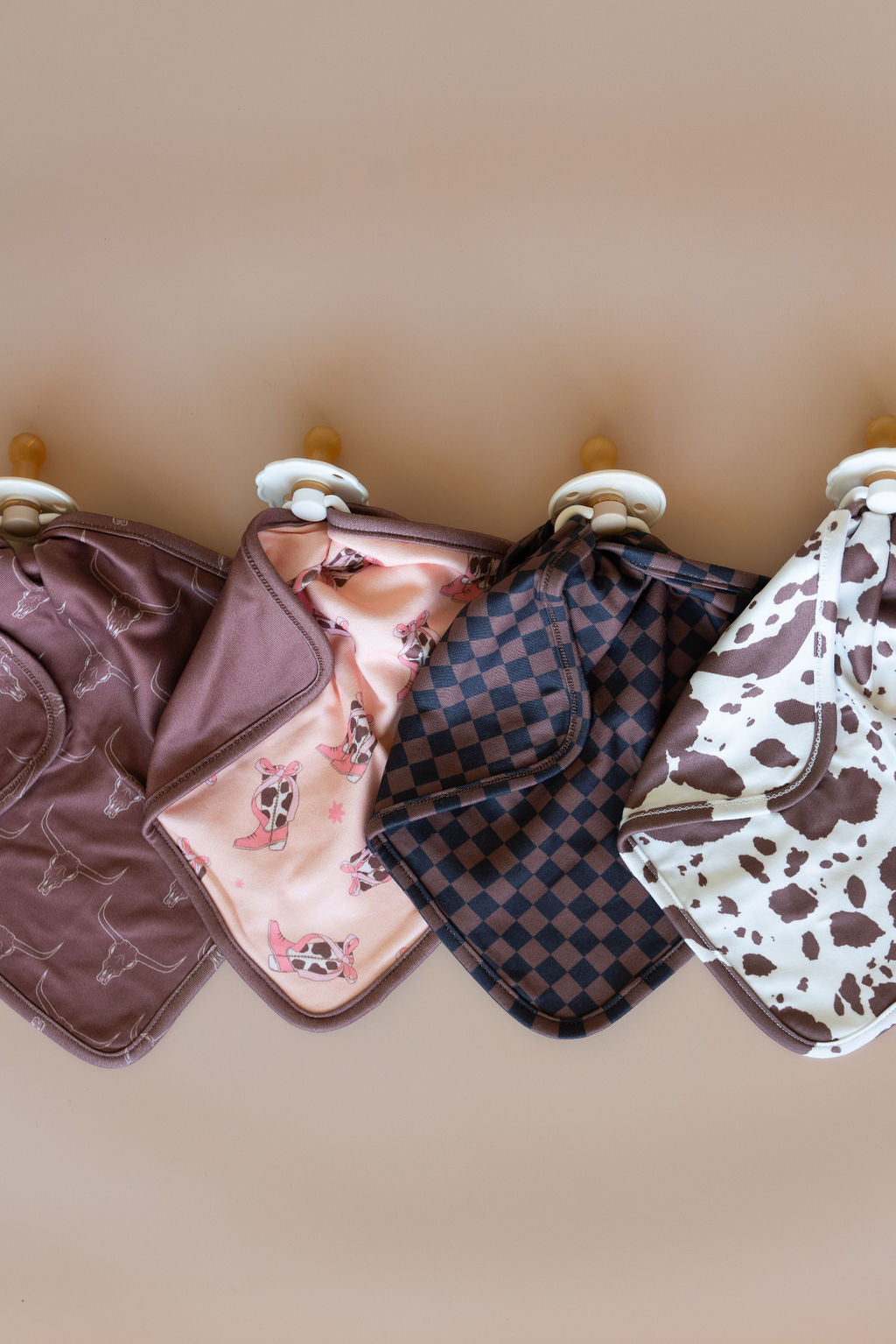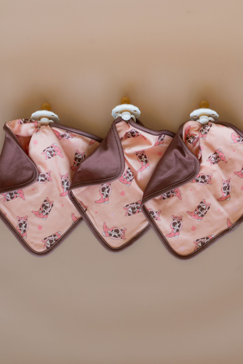Our Cozys lovies are double sided and can be attached to any pacifier, toy or teether.