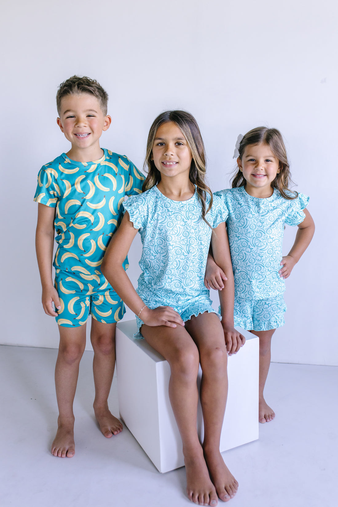Our Cozys short sets are made out of the same buttery soft jersey knit fabric as our blankets and swaddles.