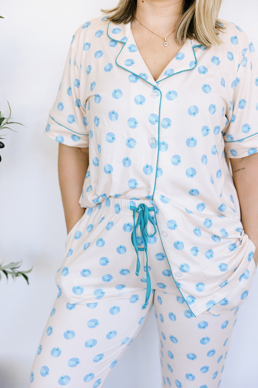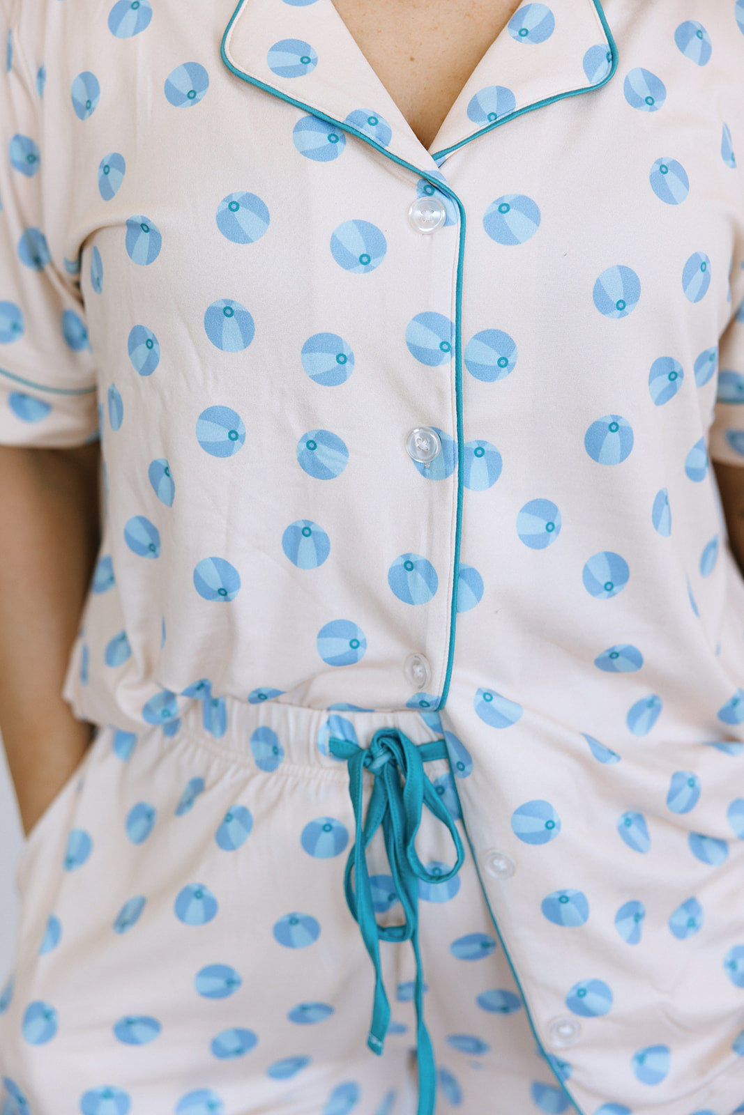 BEACH BALL | NEW* WOMEN'S BUTTON UP SHORT SLEEVE SET