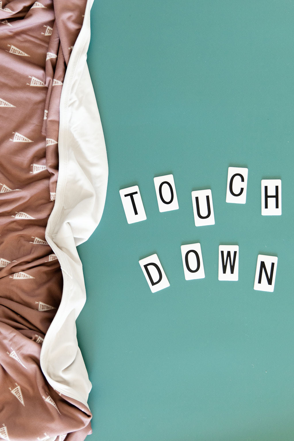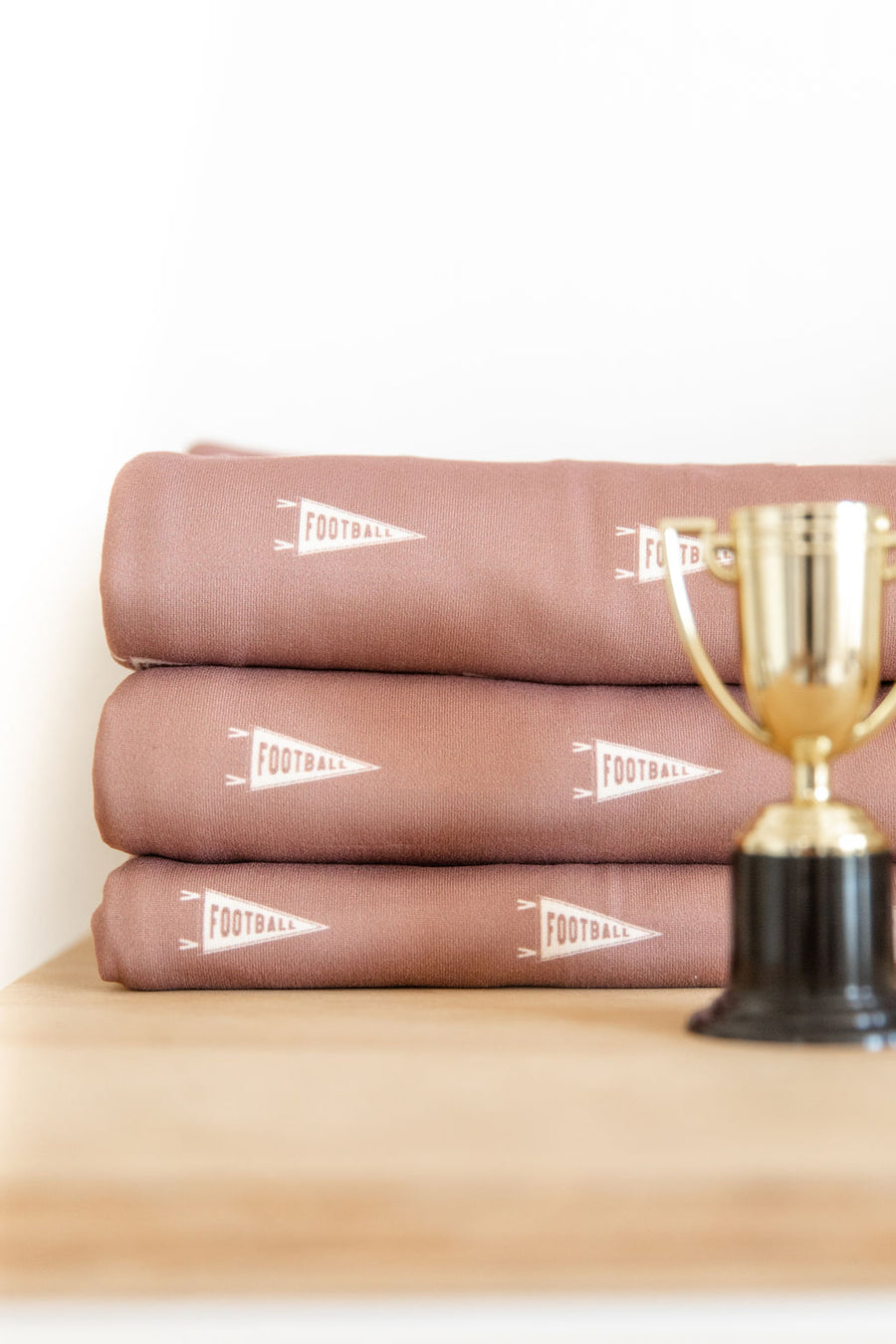 Light Brown + Pale Tan Football Pennant Flag print blanket + with a Pale Tan solid reverse.