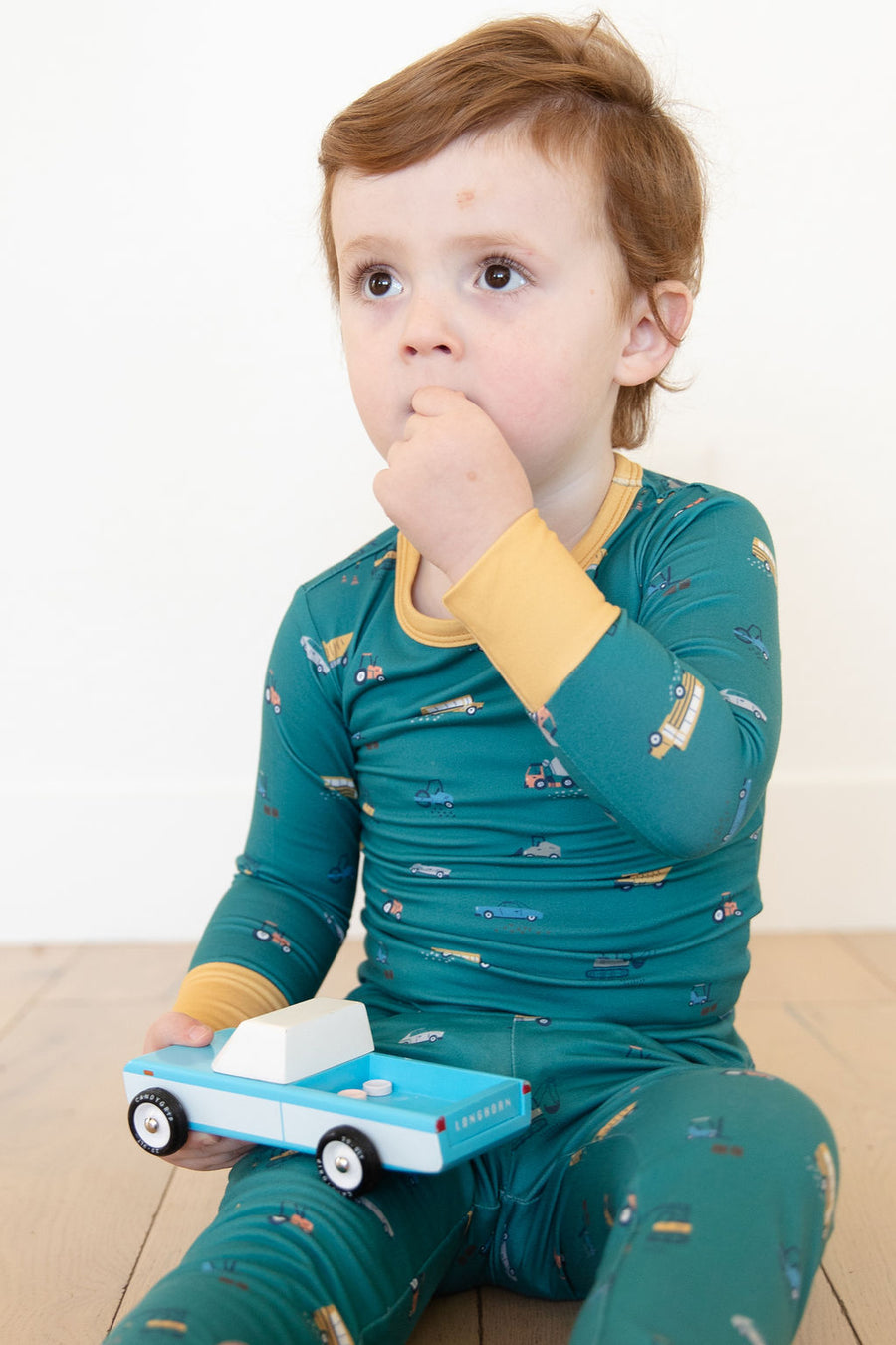 The Cozy Pajamas are made out of the same buttery soft jersey knit fabric as our blankets and swaddles.