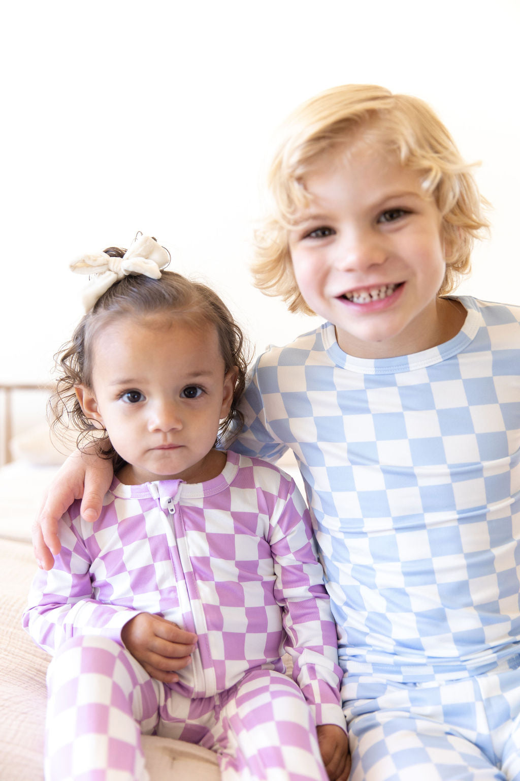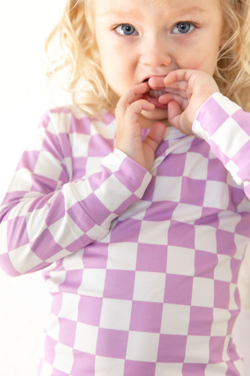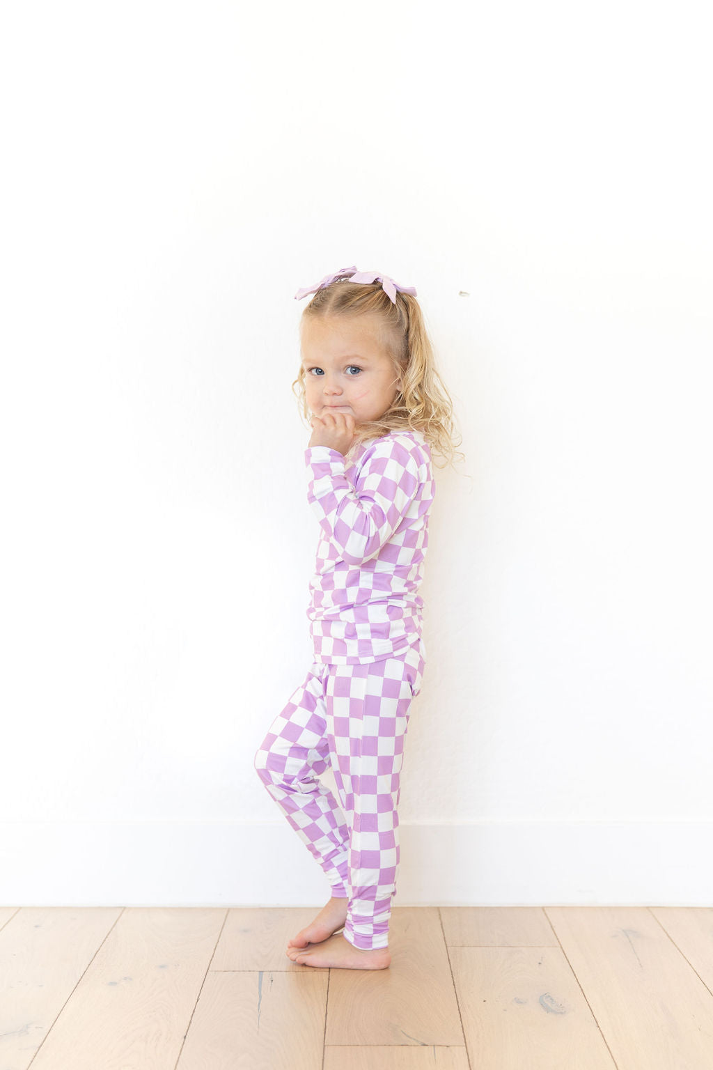 LIGHT PURPLE + WHITE CHECKER PAJAMA SET