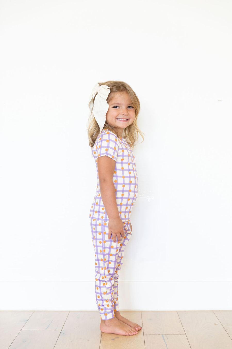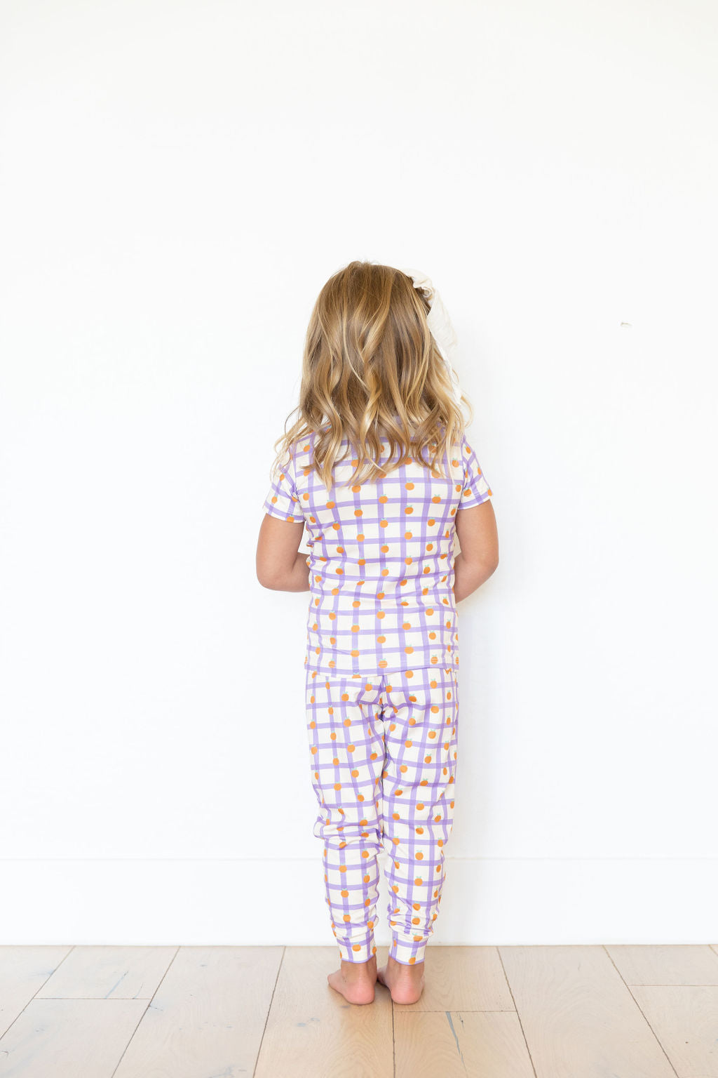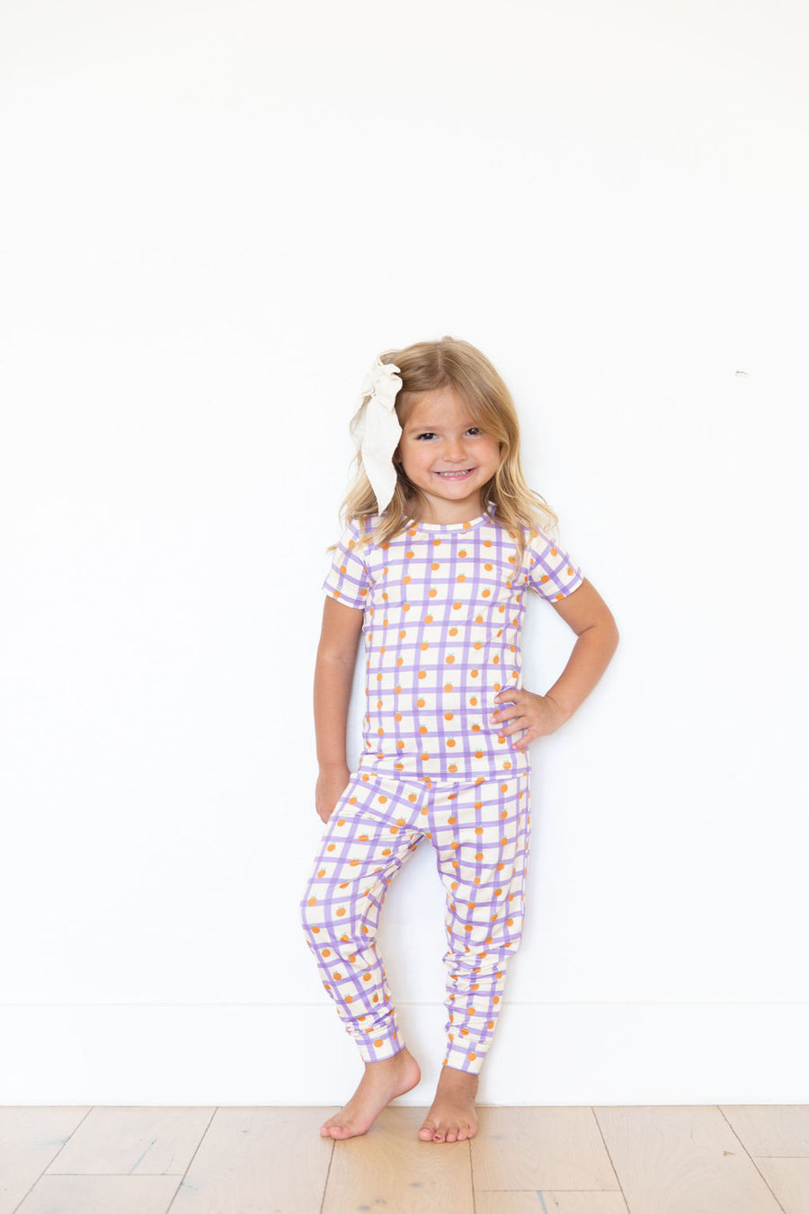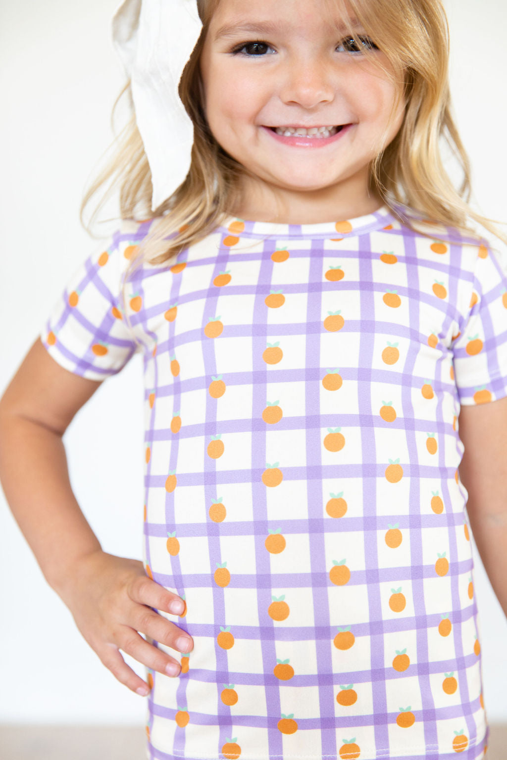 PURPLE GRID + ORANGES | SHORT SLEEVE PAJAMA SET