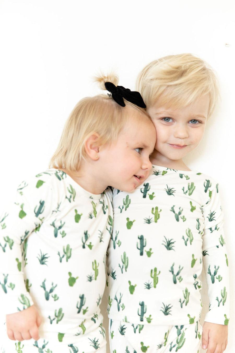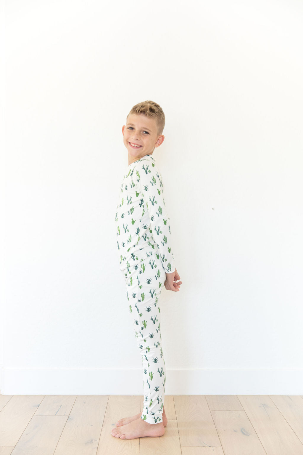 The Cozy Pajamas are made out of the same buttery soft jersey knit fabric as our blankets and swaddles.
