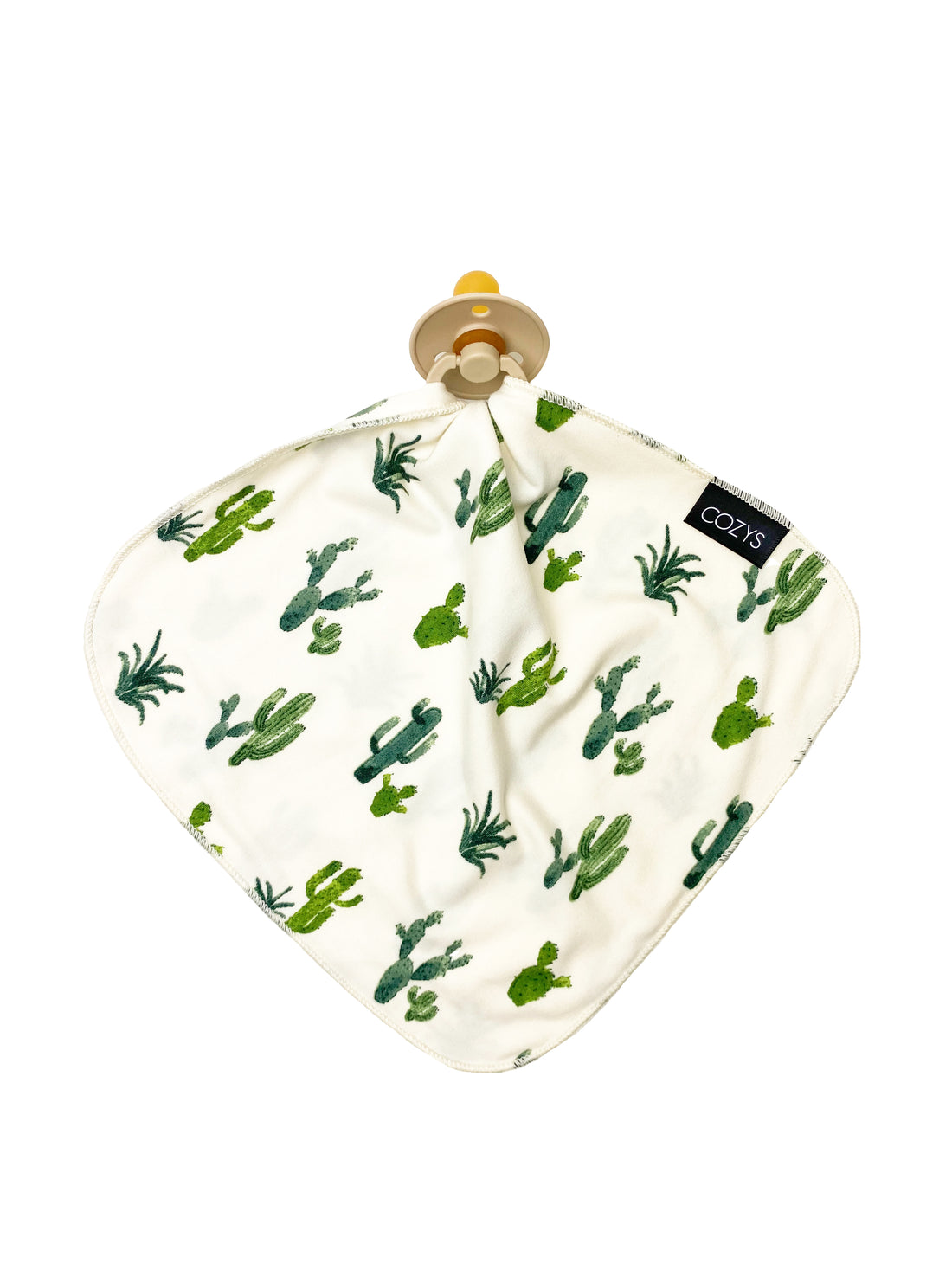 Our Cozys lovies are double sided and can be attached to any pacifier, toy or teether.