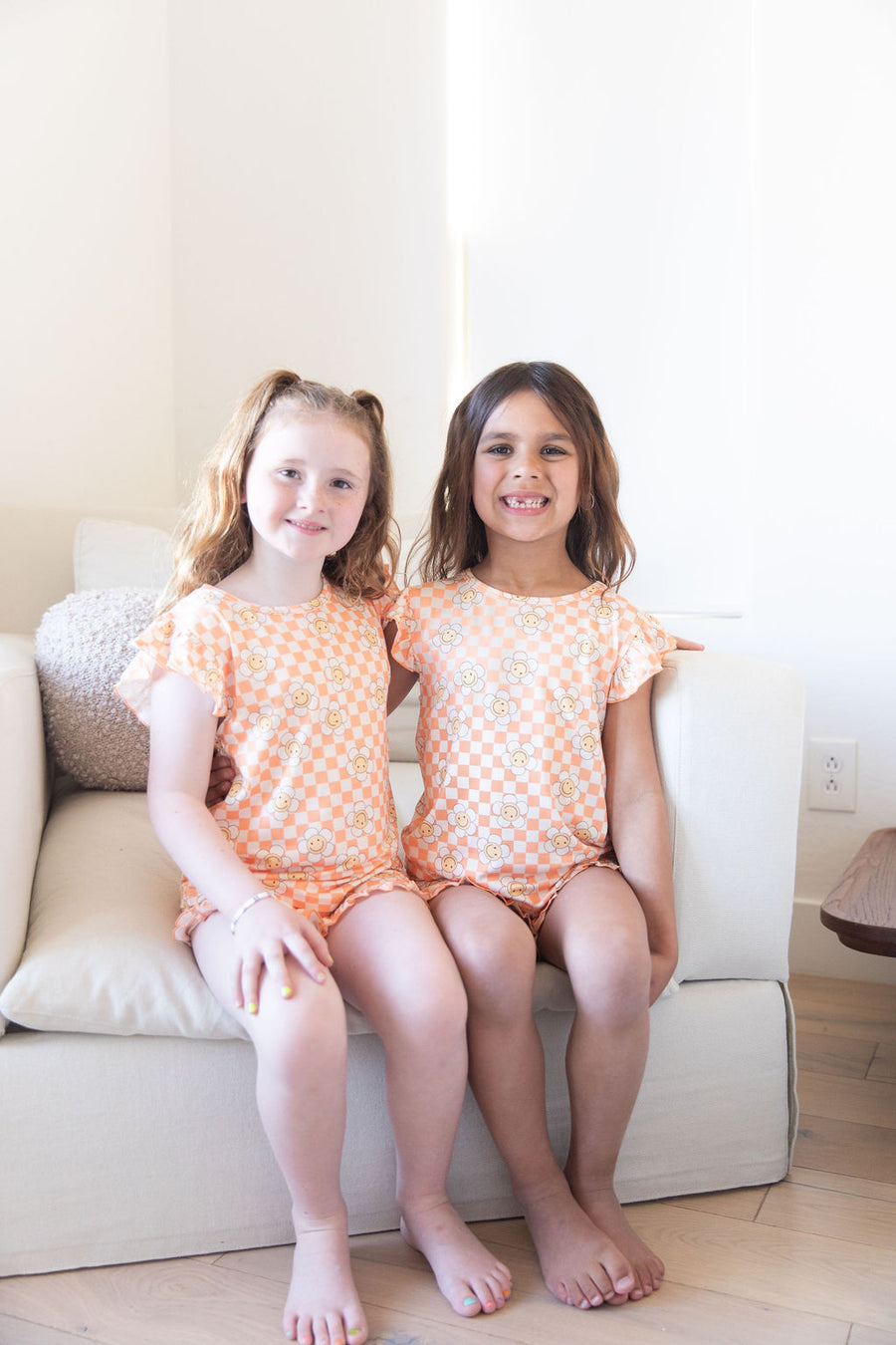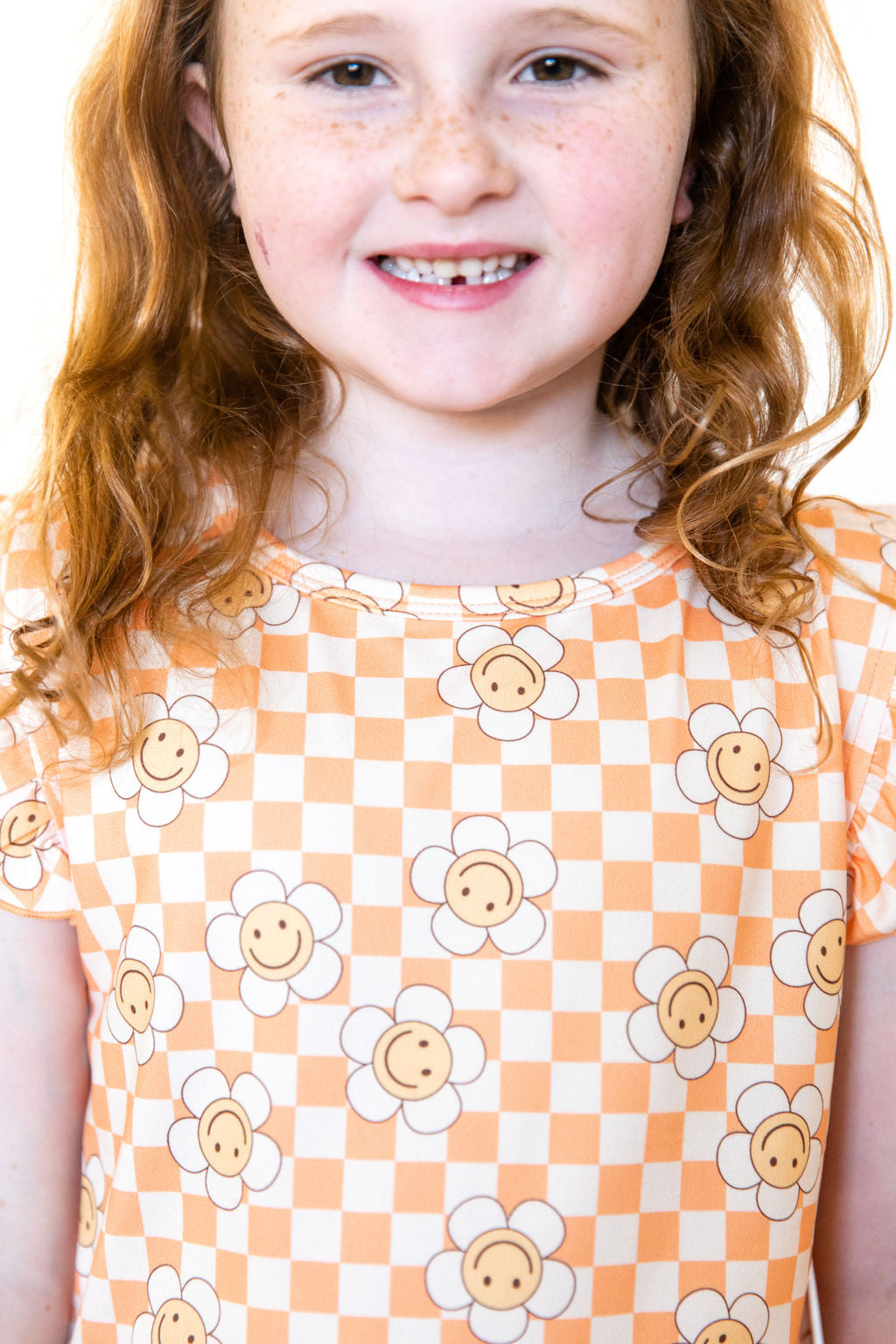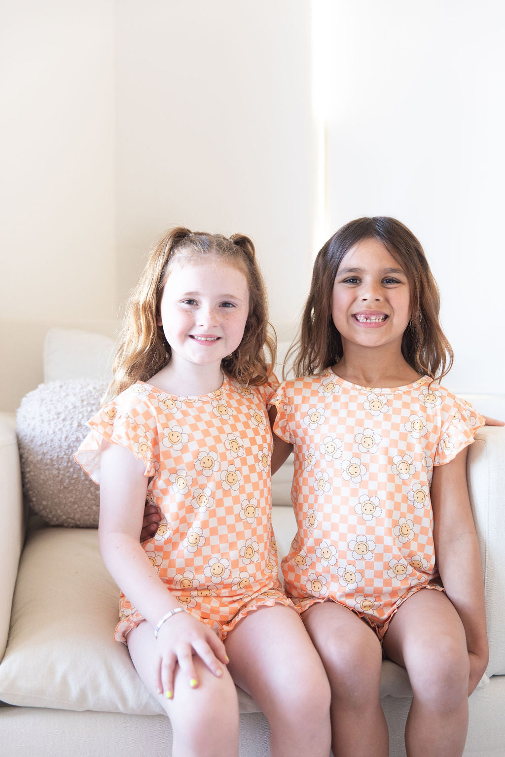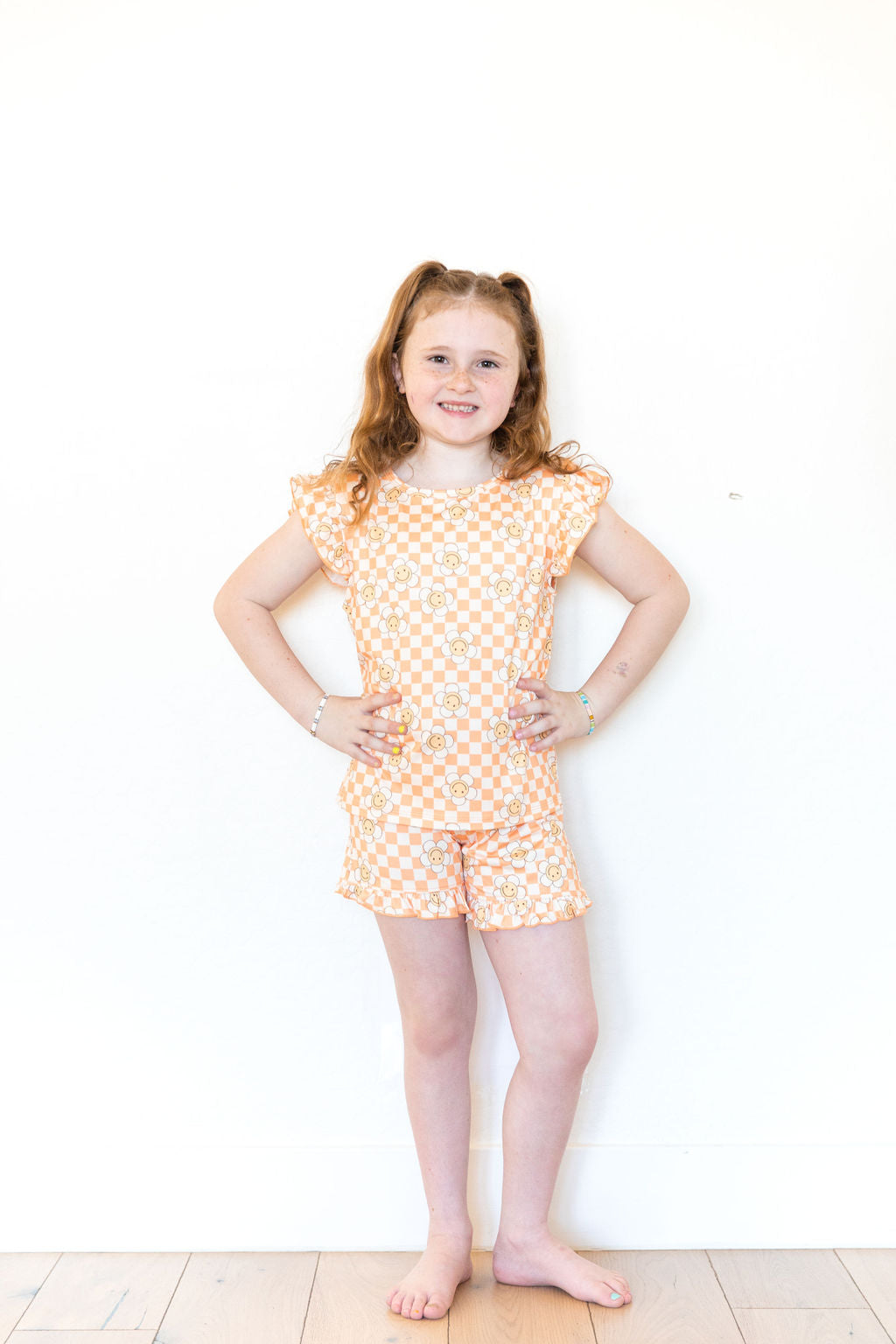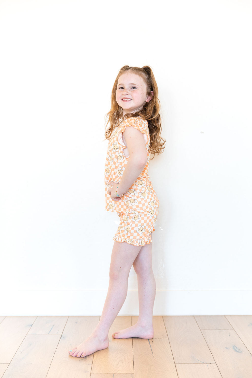 ORANGE SMILEY CHECKER | RUFFLE SHORT SET