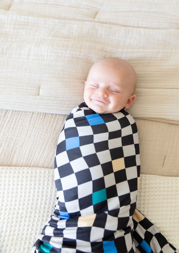 LIGHT BLUE + WHITE CHECKER | SWADDLE