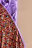Mixed floral print with an orange background paired with a lilac solid reverse.