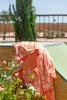 BRIGHT CORAL CHECKER + PINK DAISY FLORAL PRINT, WITH A BRIGHT CORAL SOLID REVERSE.