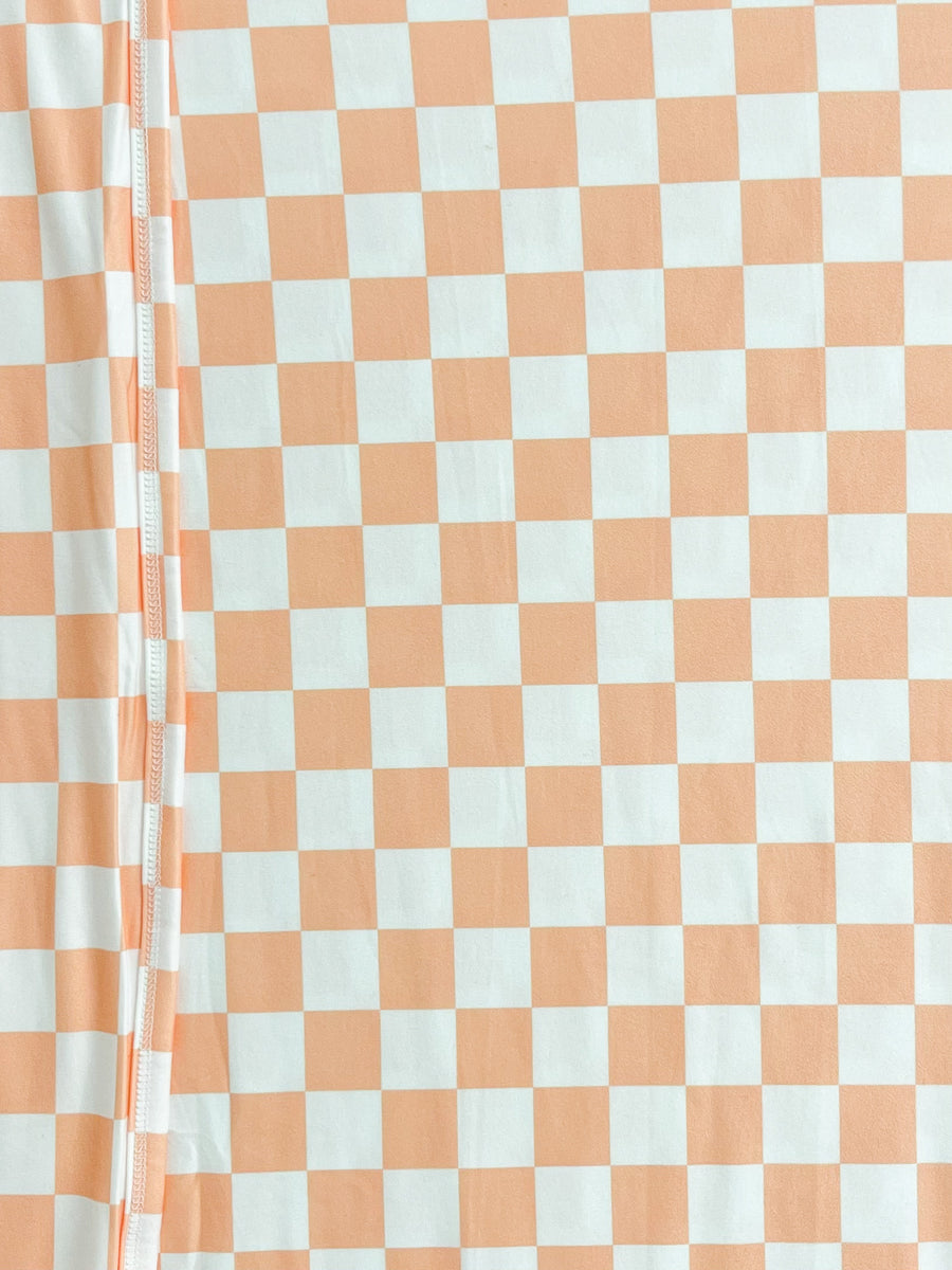 Bright orange + white checker print paired with the same back.