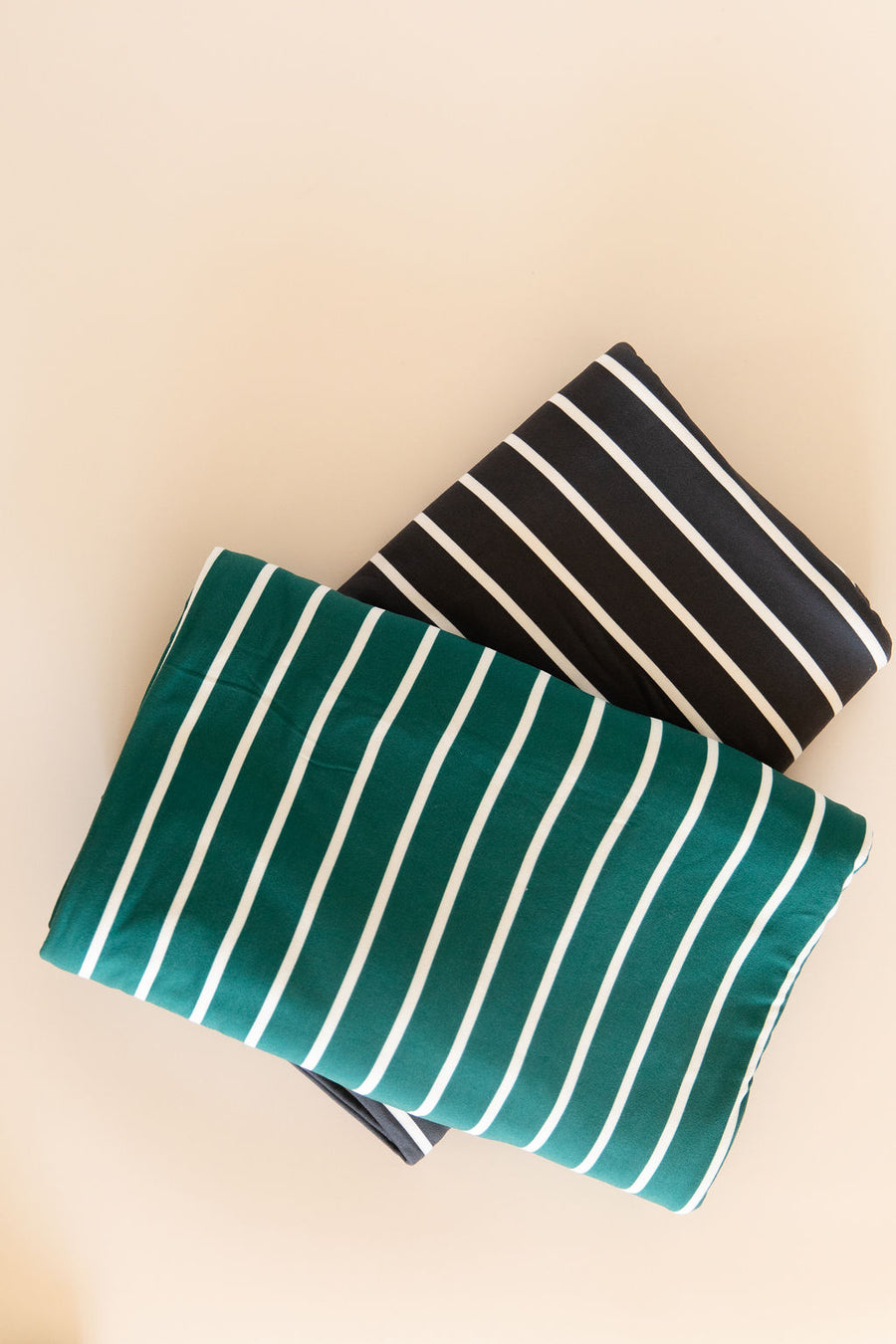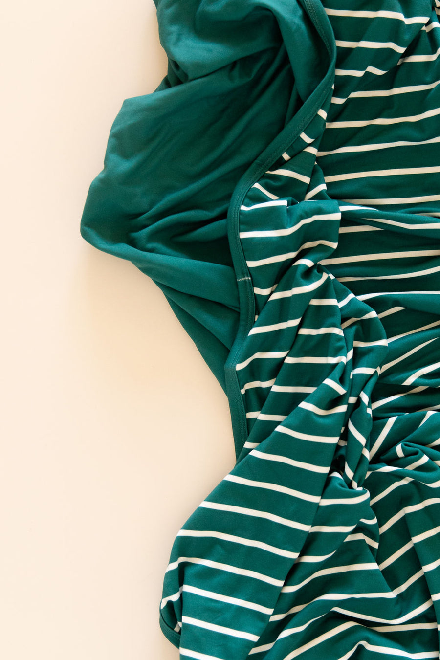 Hunter Green + White Stripe blanket + with a Hunter Green solid reverse.