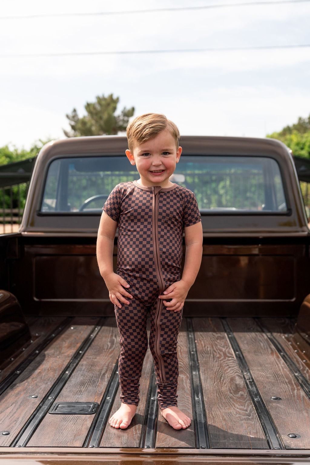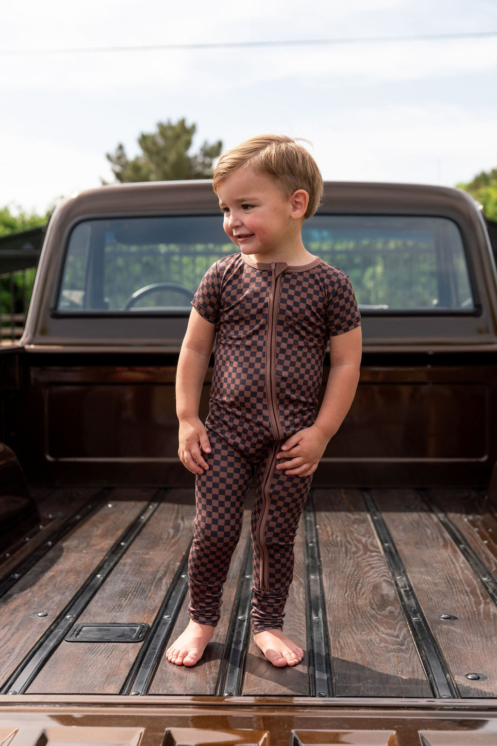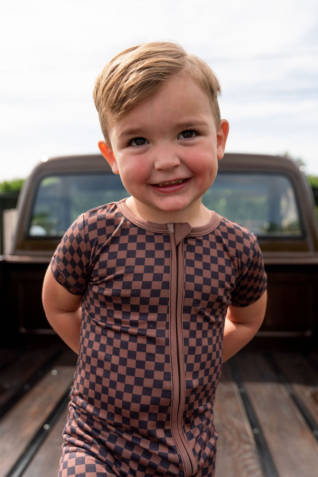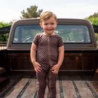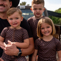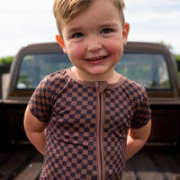 BLACK + BROWN MINI CHECKER | SHORT SLEEVE ZIPPER ONE PIECE