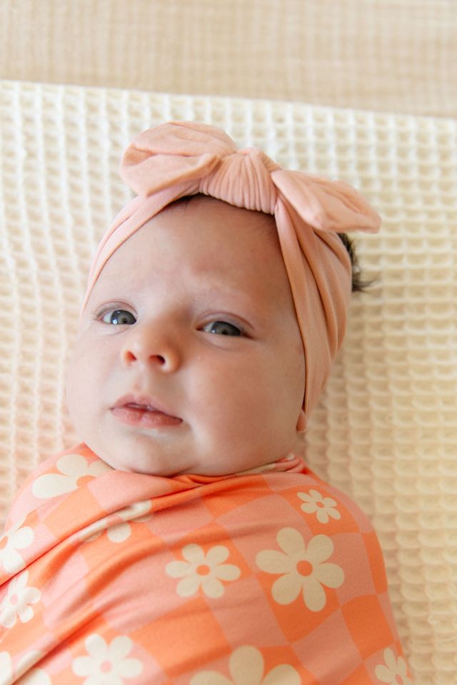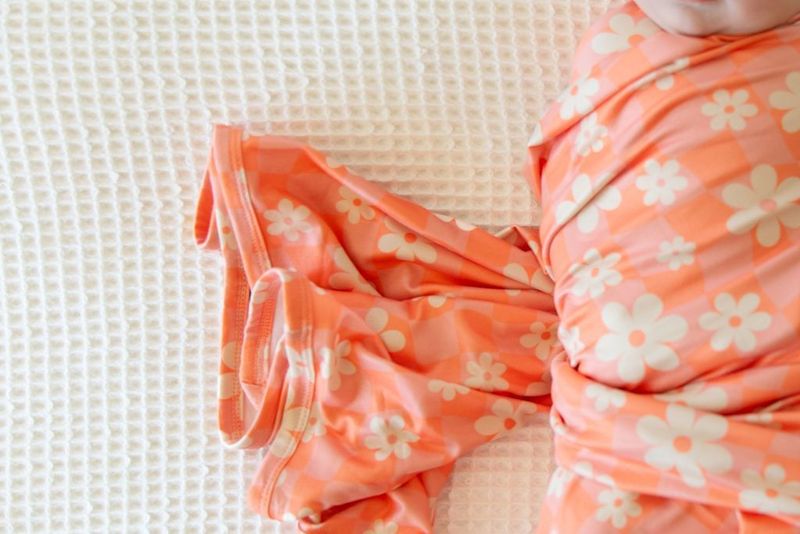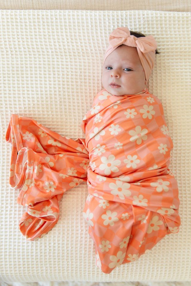 BRIGHT CORAL + PINK DAISY CHECKER | SWADDLE
