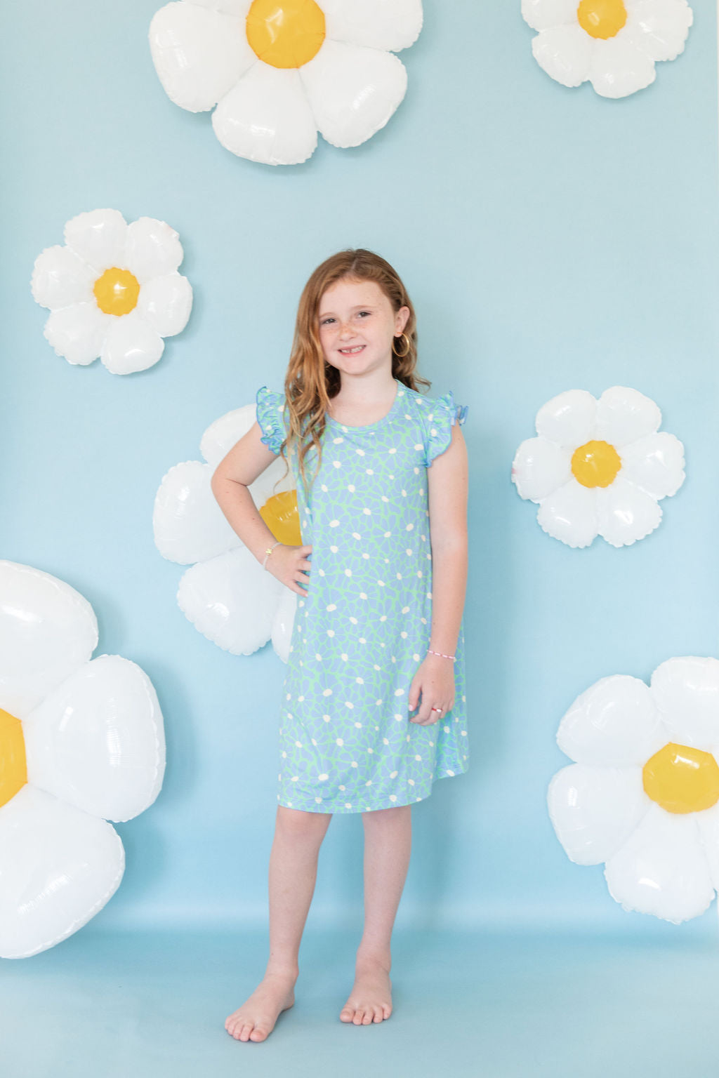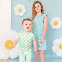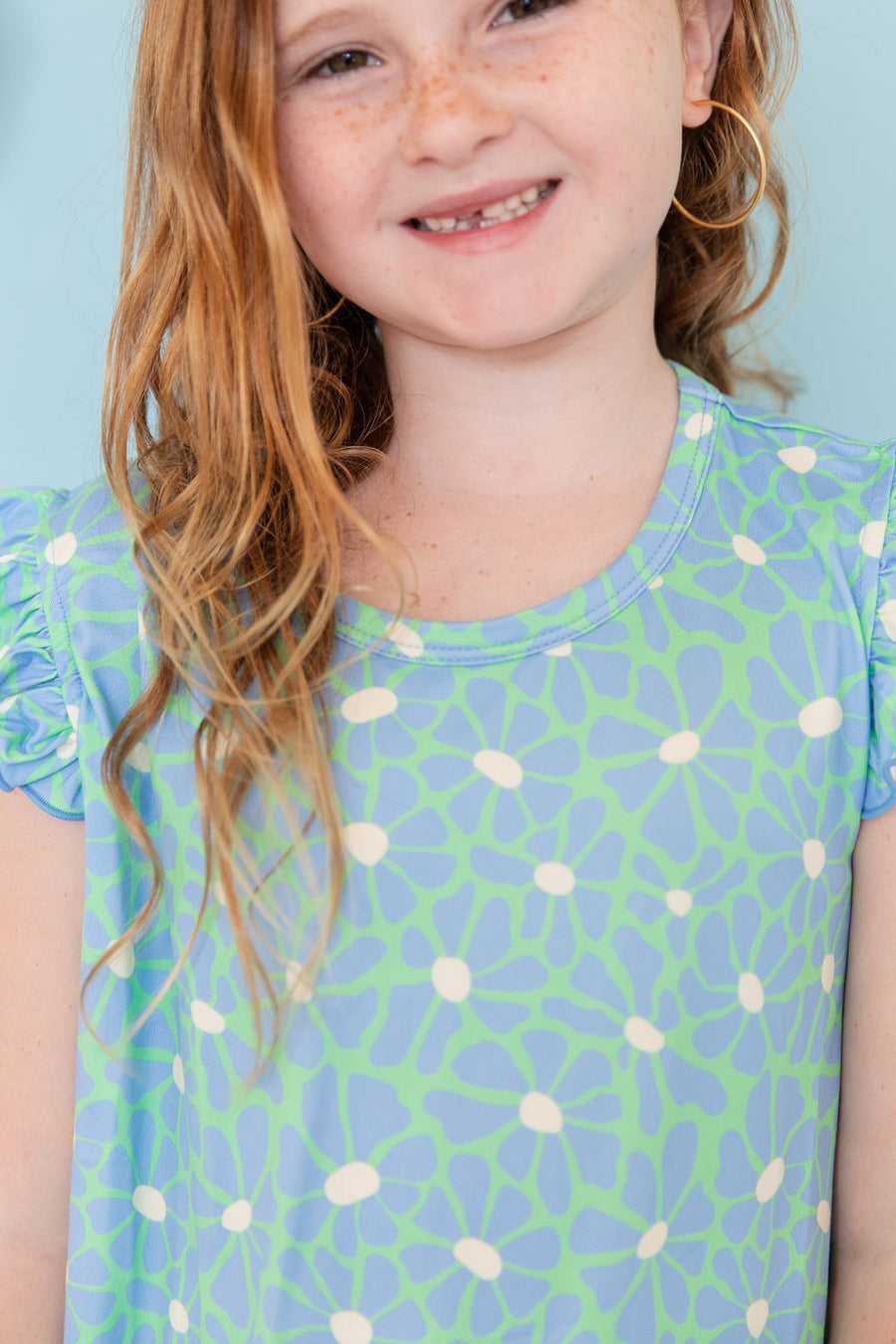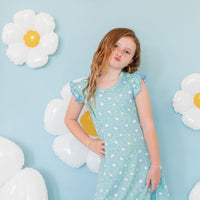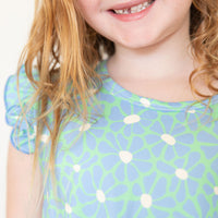 BRIGHT GREEN + BLUE FLORAL | SLEEVE DRESS