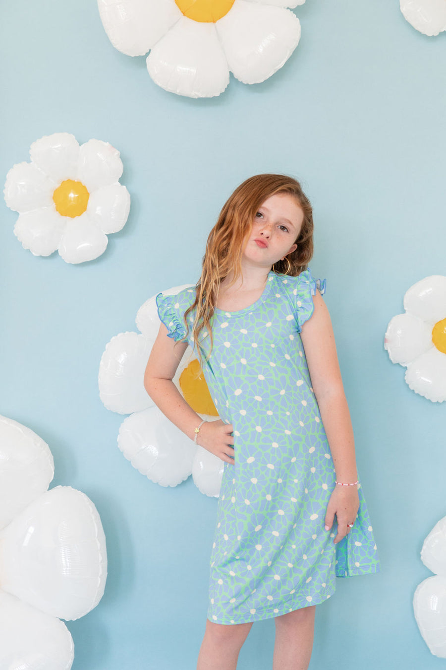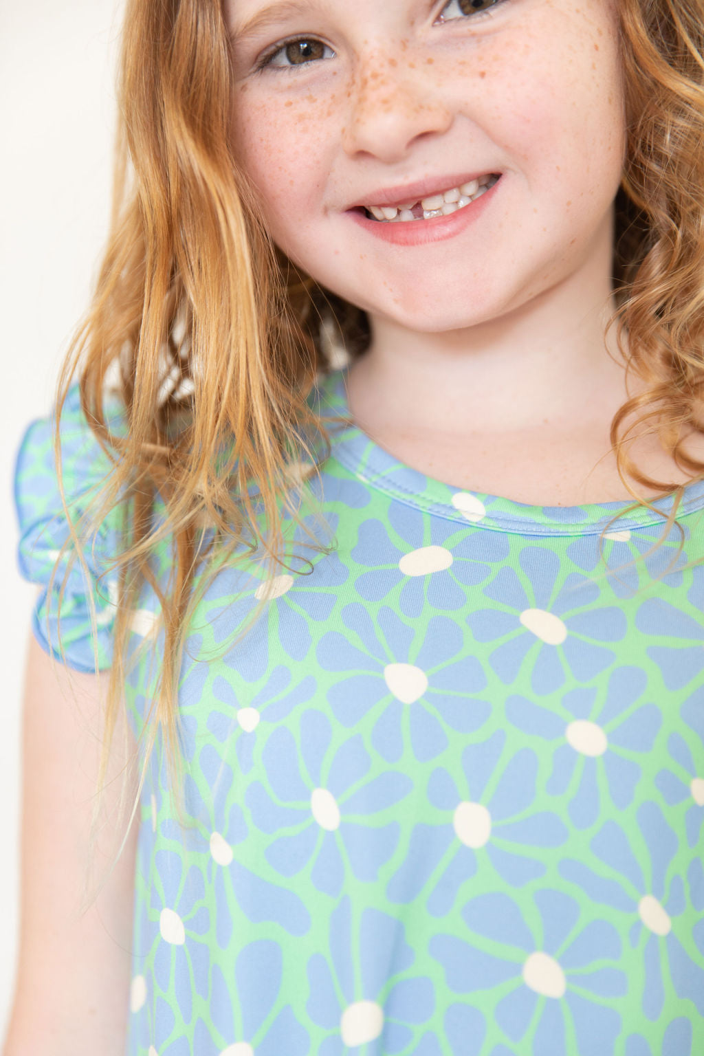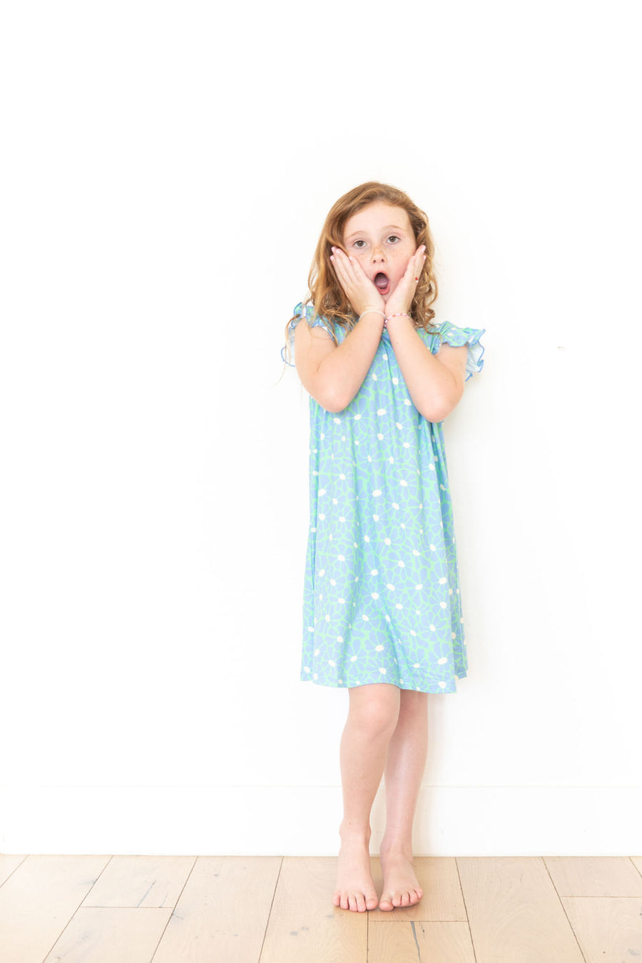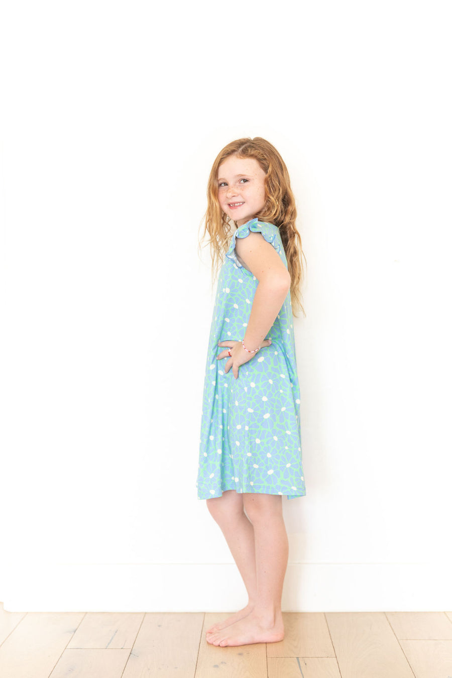 BRIGHT GREEN + BLUE FLORAL | SLEEVE DRESS