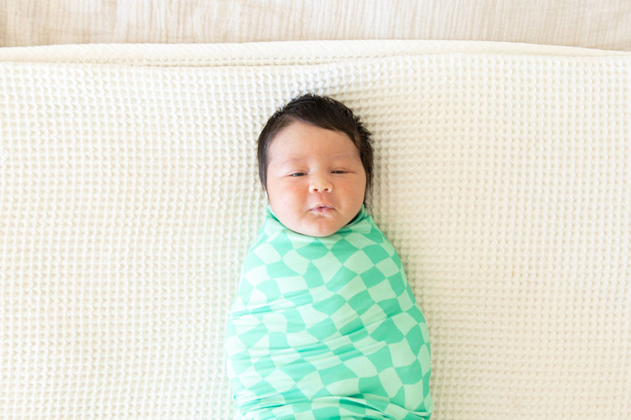 BRIGHT GREEN WAVY CHECKER | SWADDLE