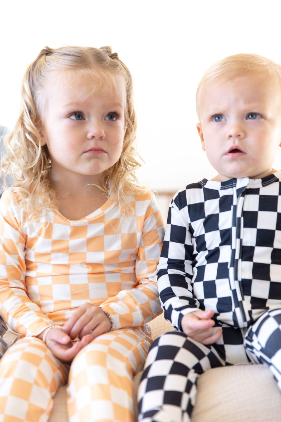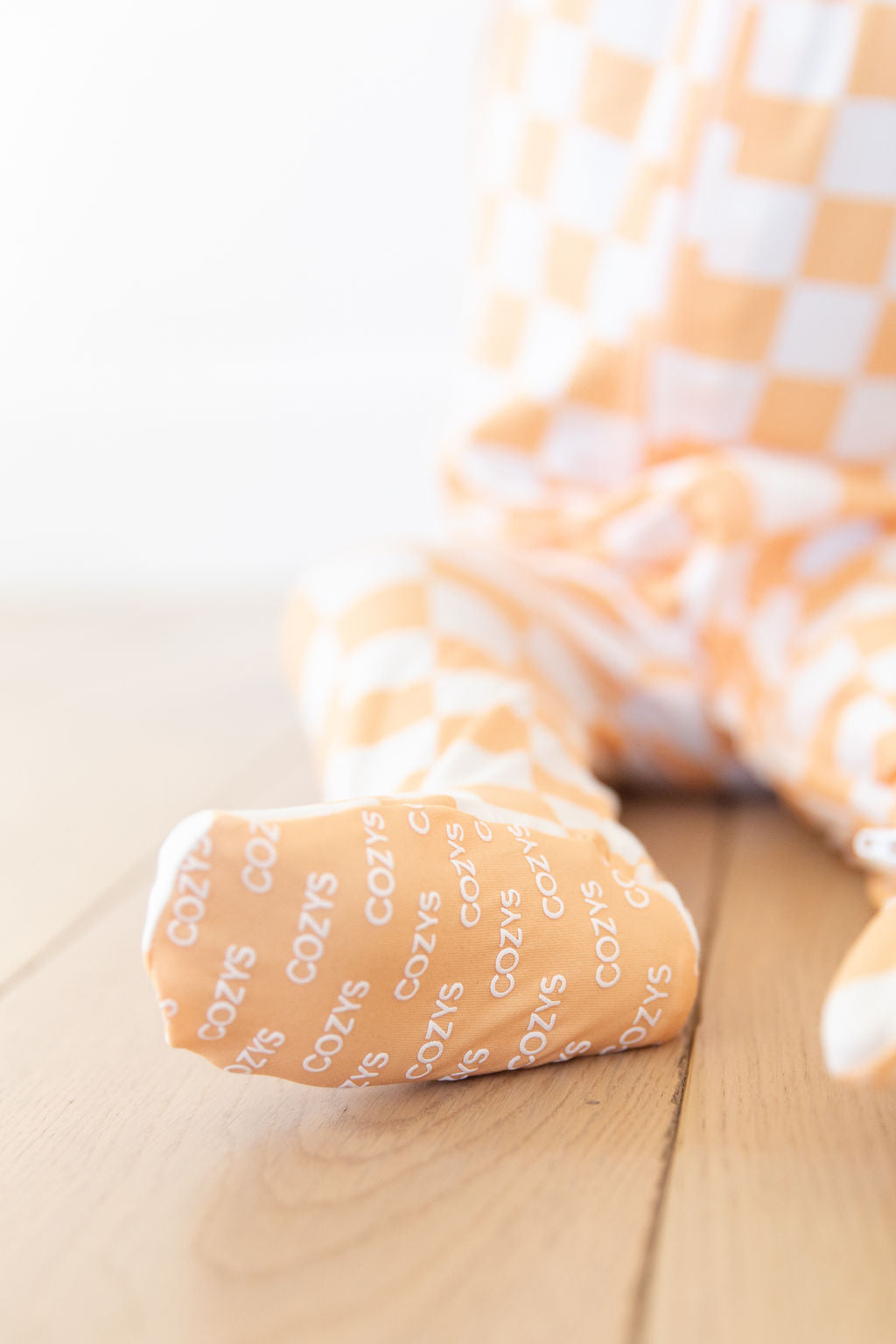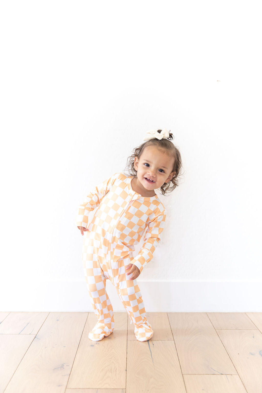 BRIGHT ORANGE + WHITE CHECKER | FOOTIE ONE PIECE