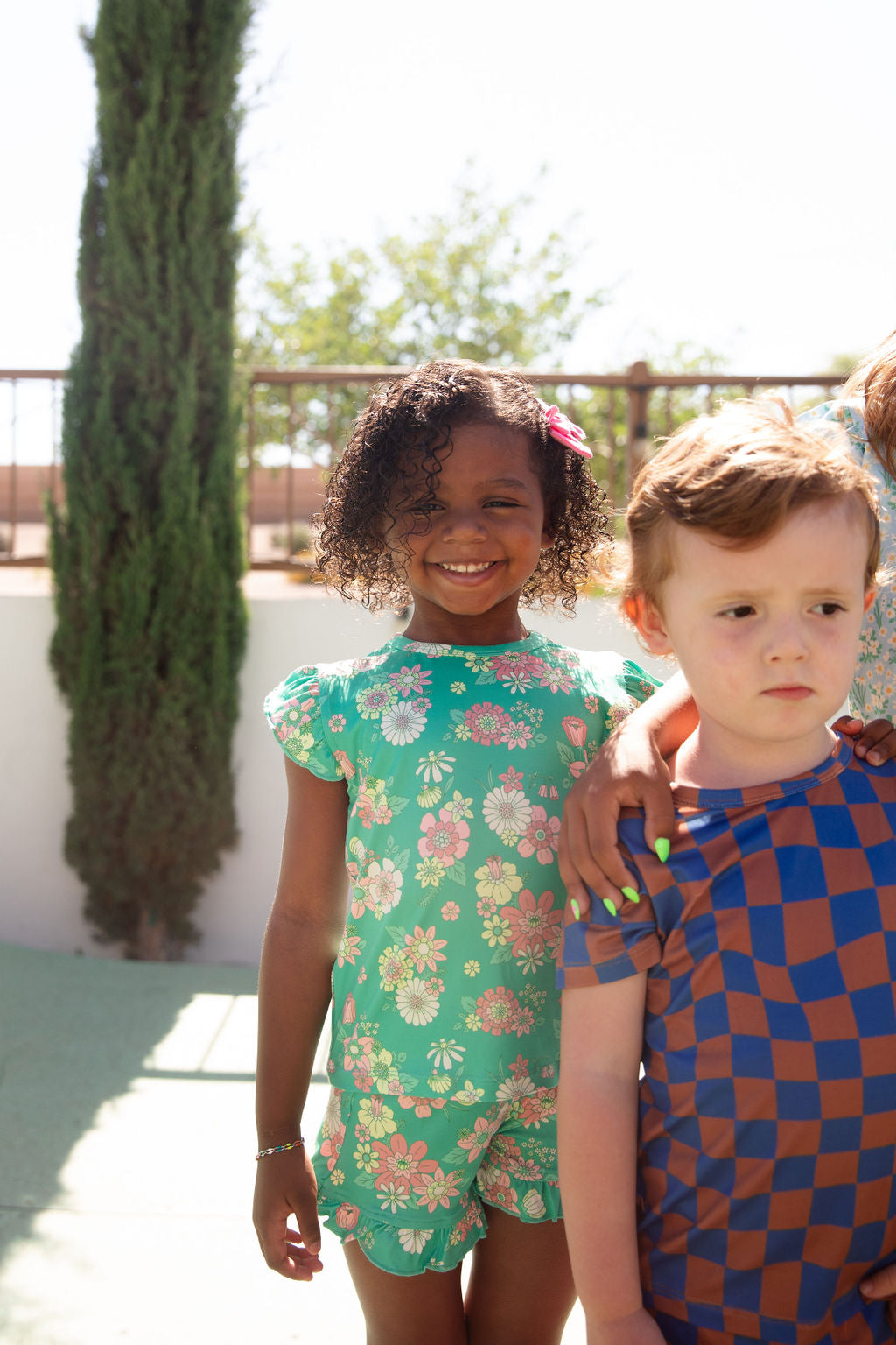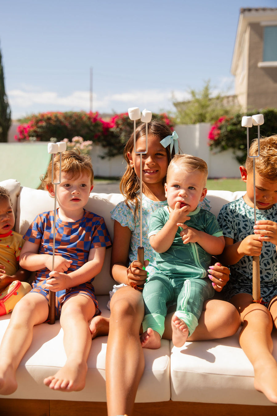 Our Cozys short sets are made out of the same buttery soft jersey knit fabric as our blankets and swaddles.