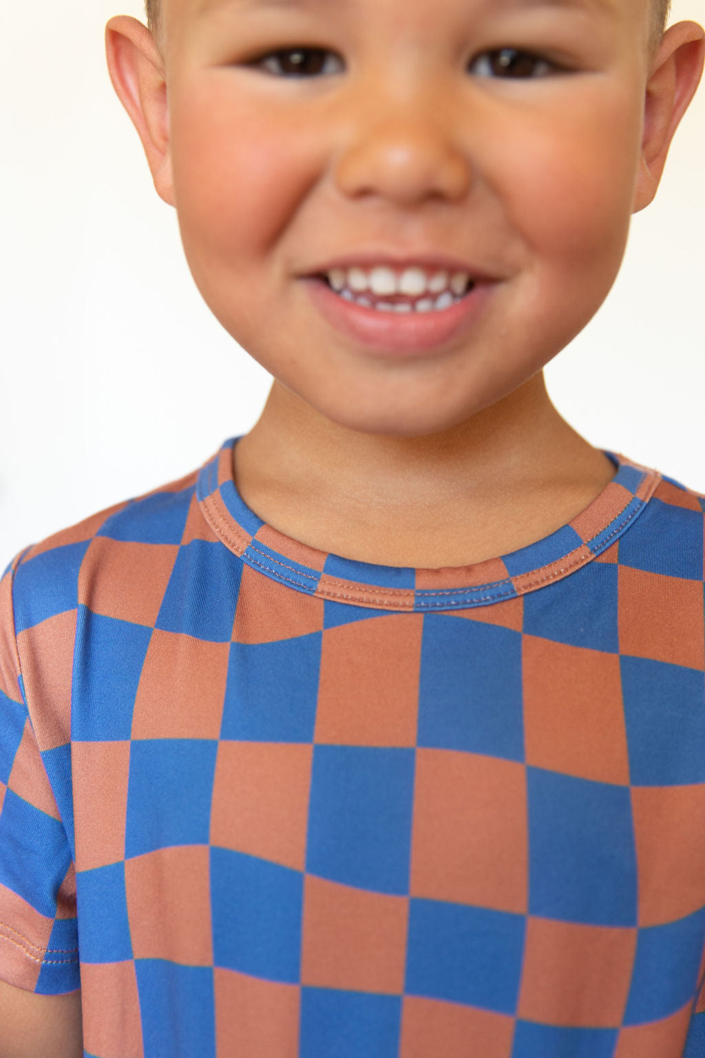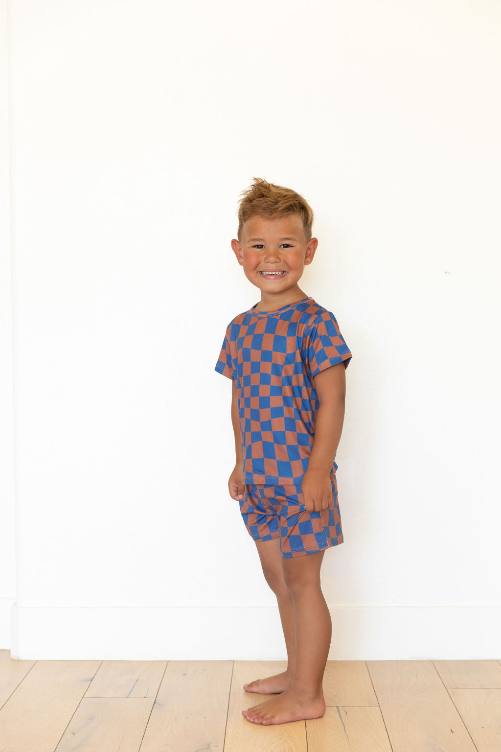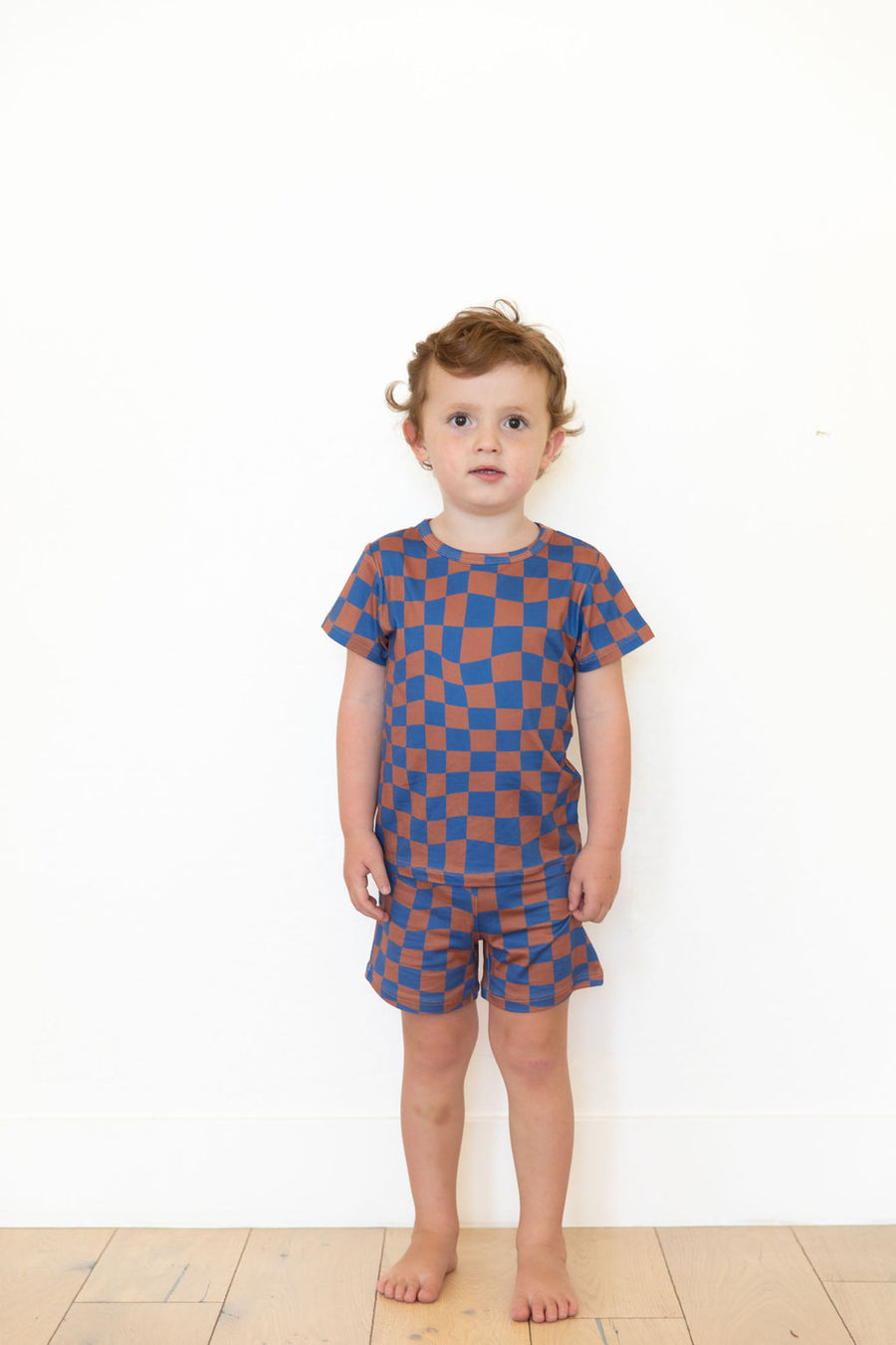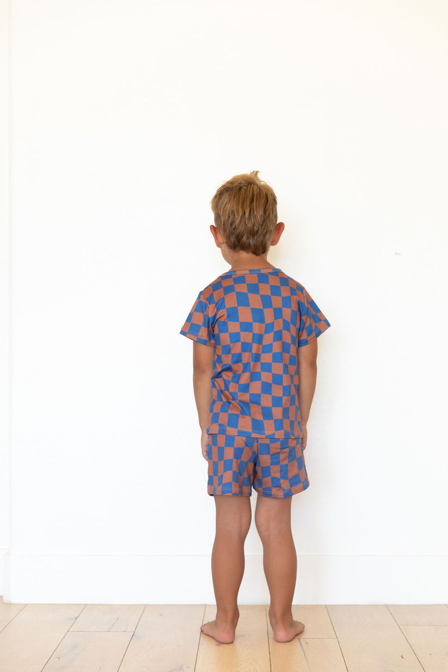 BROWN + ROYAL BLUE WAVY CHECKER | SHORT SET