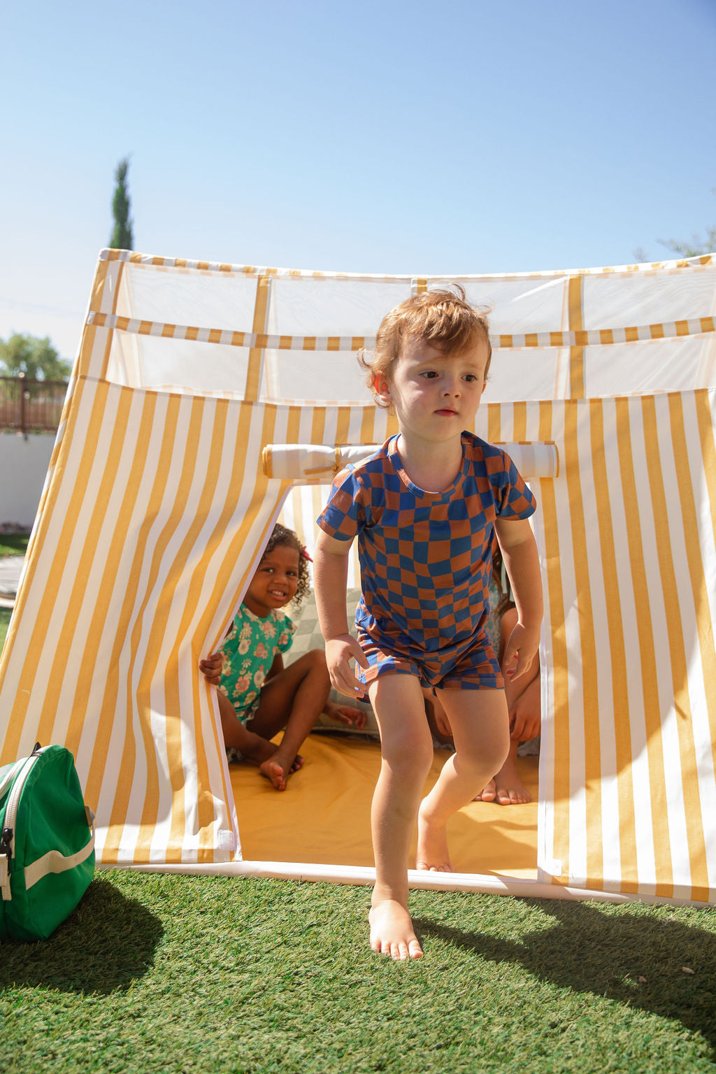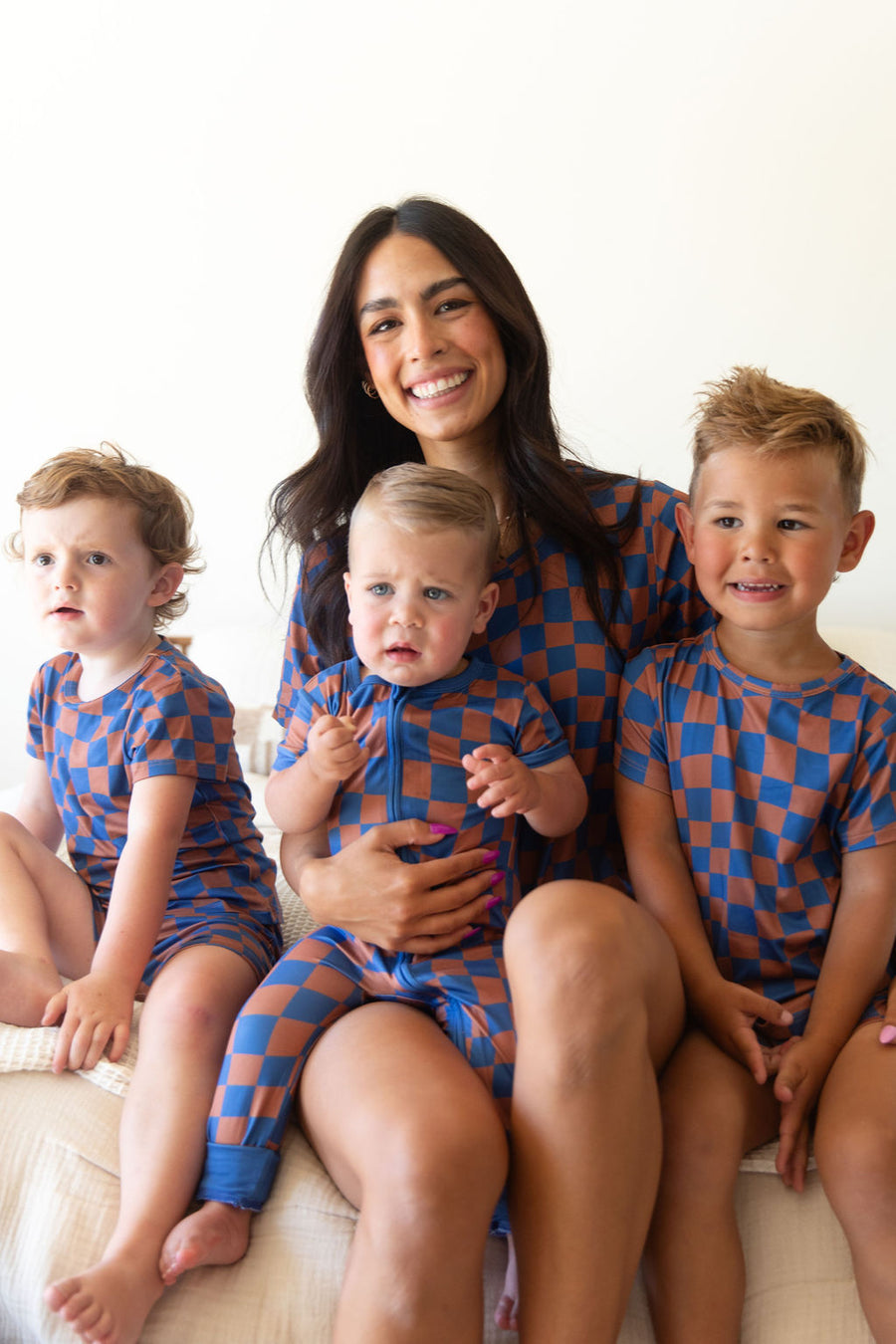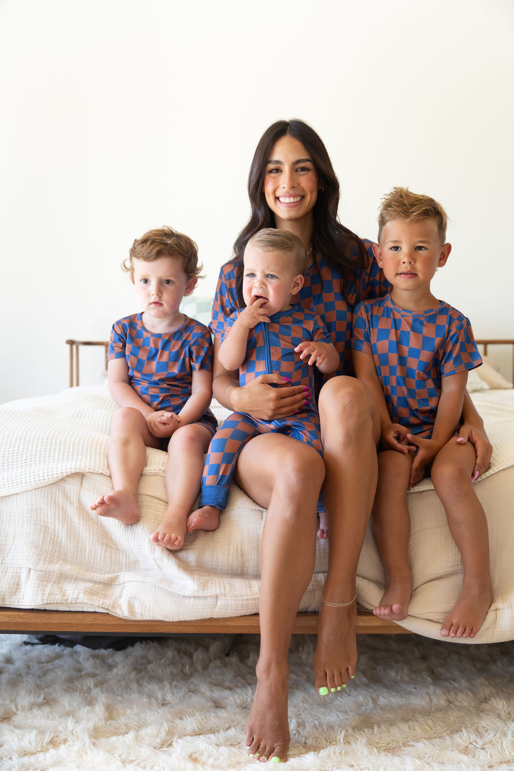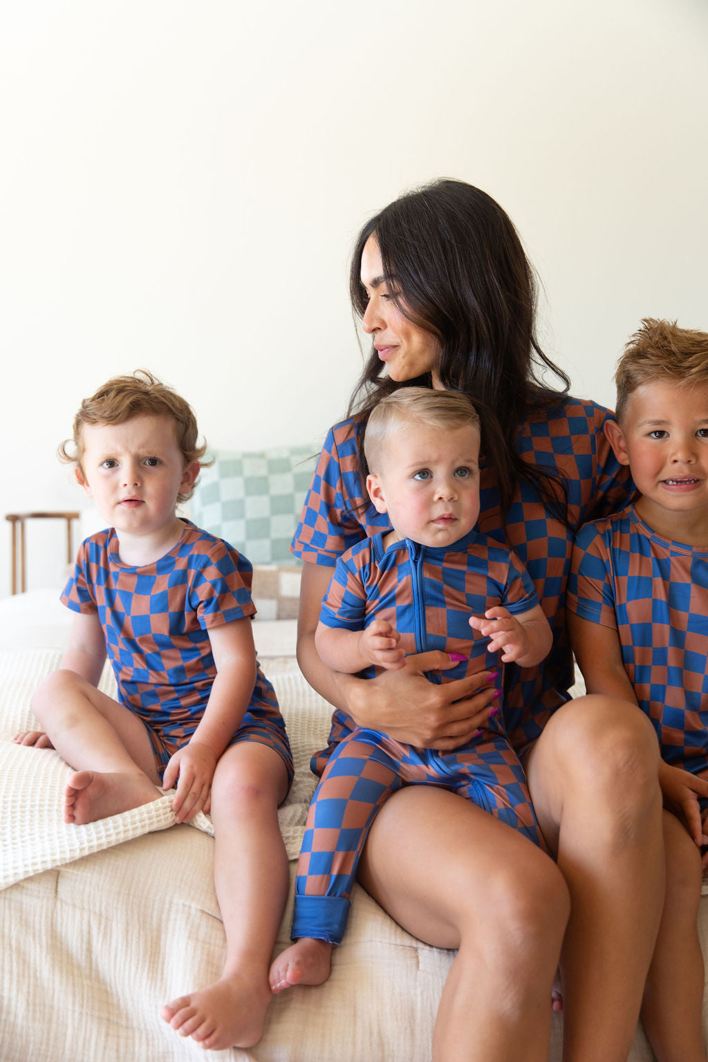 BROWN + ROYAL BLUE WAVY CHECKER | SHORT SET