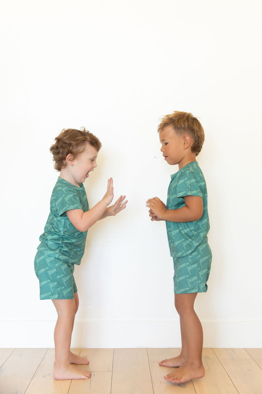 Our Cozys short sets are made out of the same buttery soft jersey knit fabric as our blankets and swaddles.