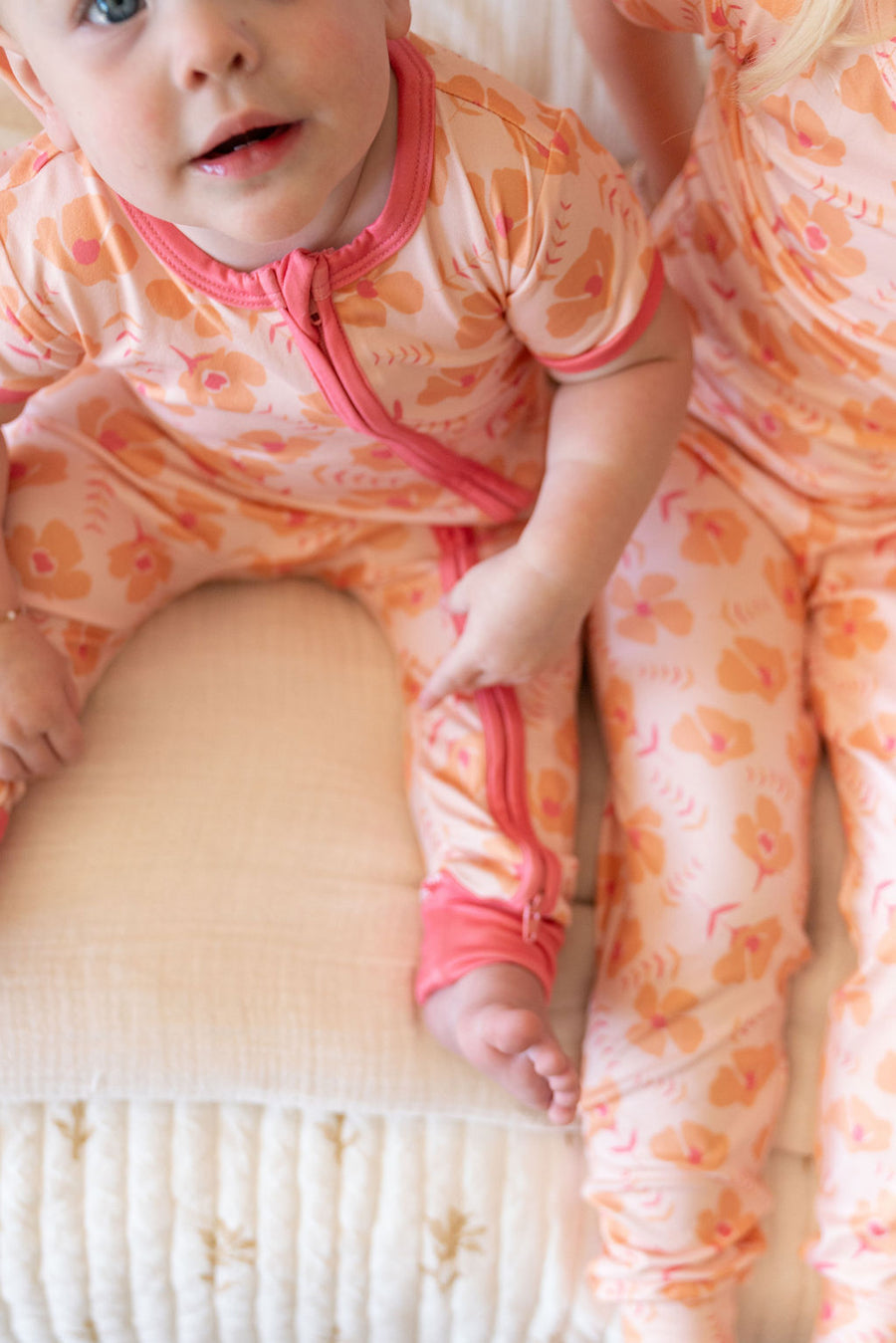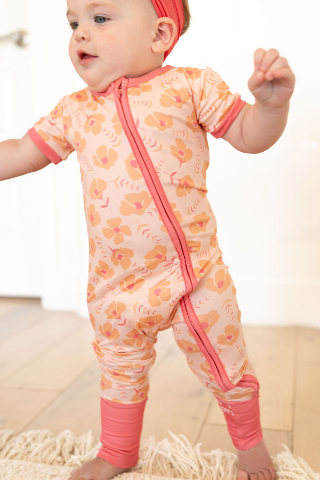 CORAL + ORANGE FLORAL | ZIPPER ONE PIECE