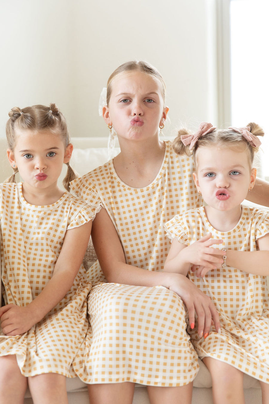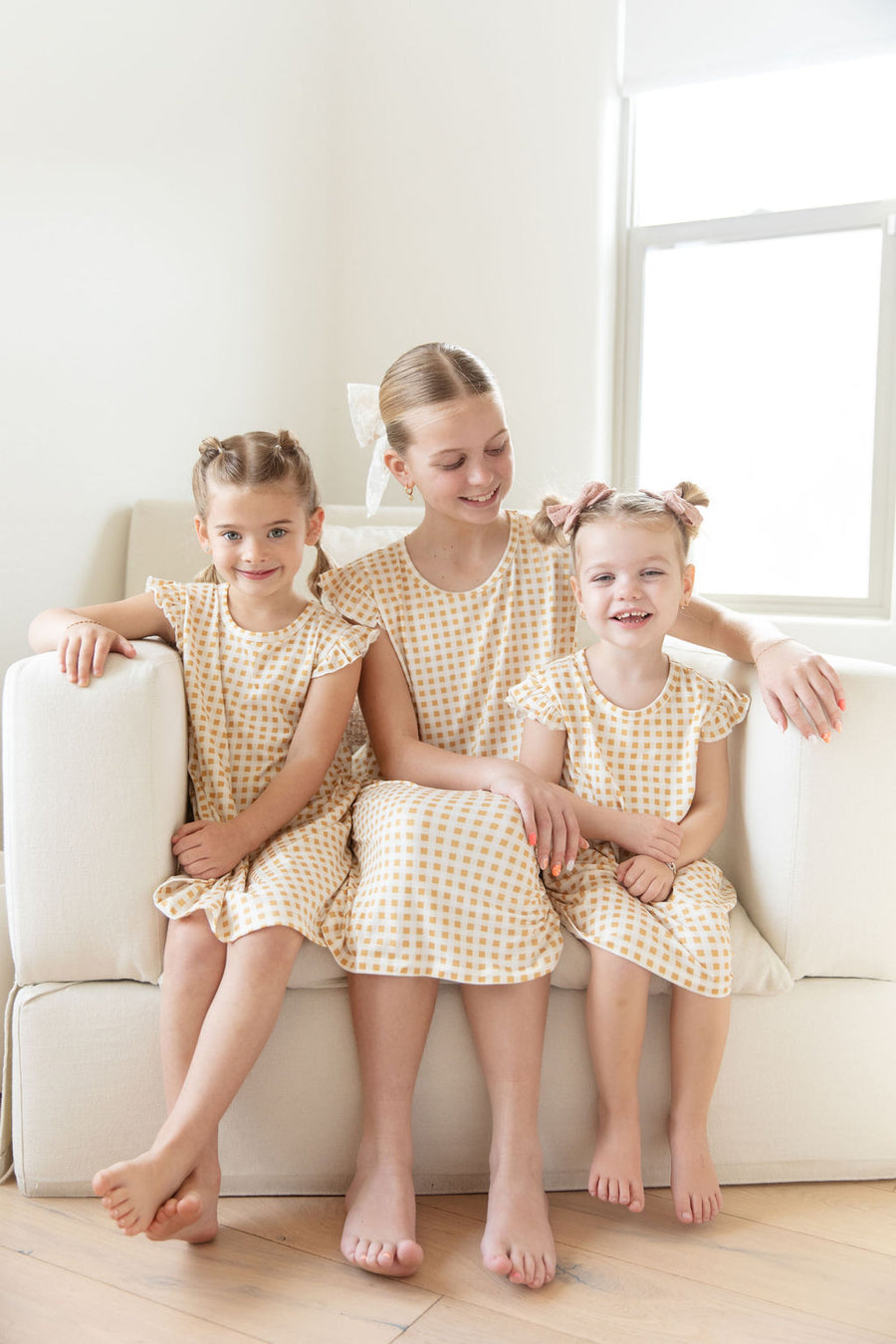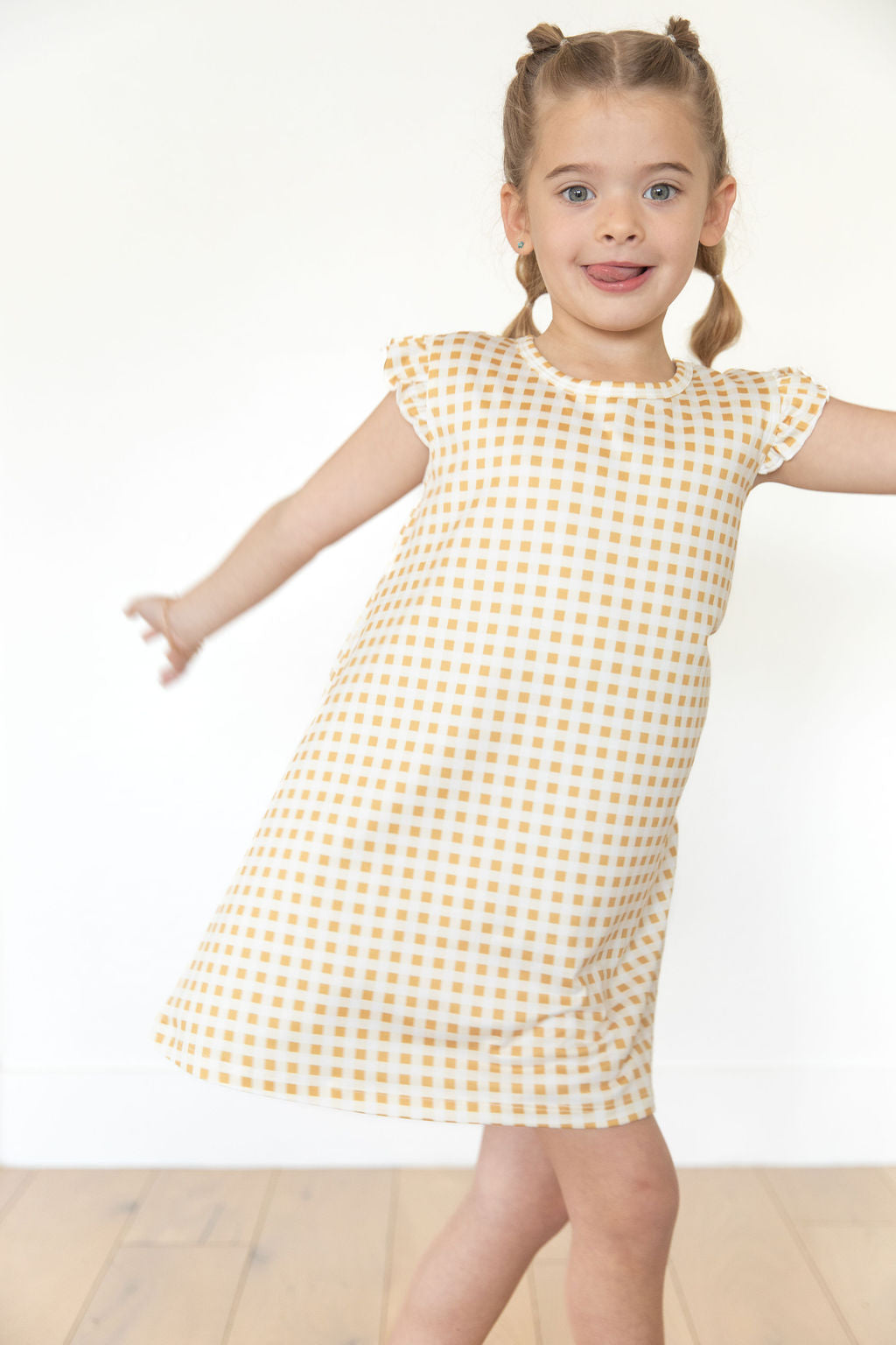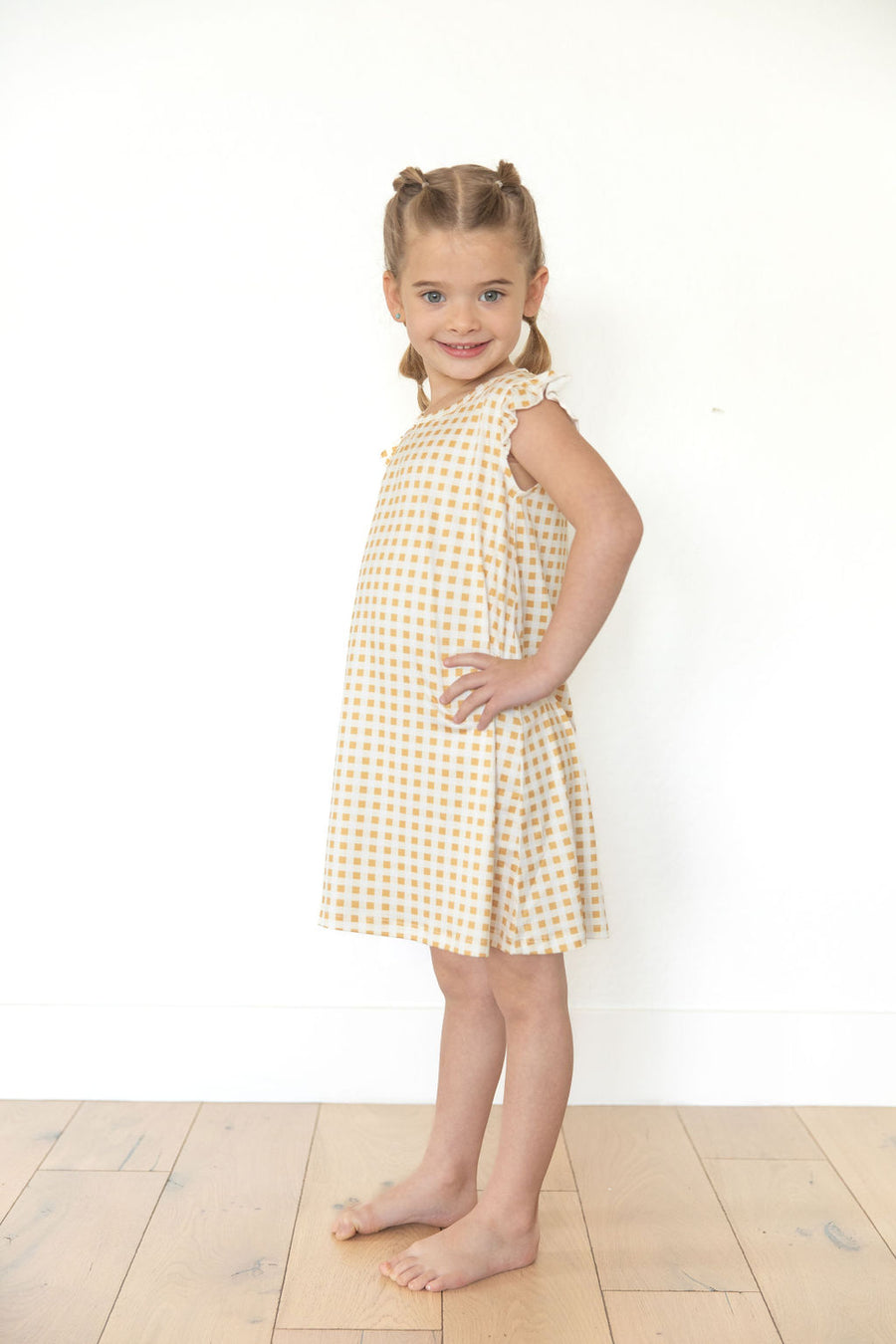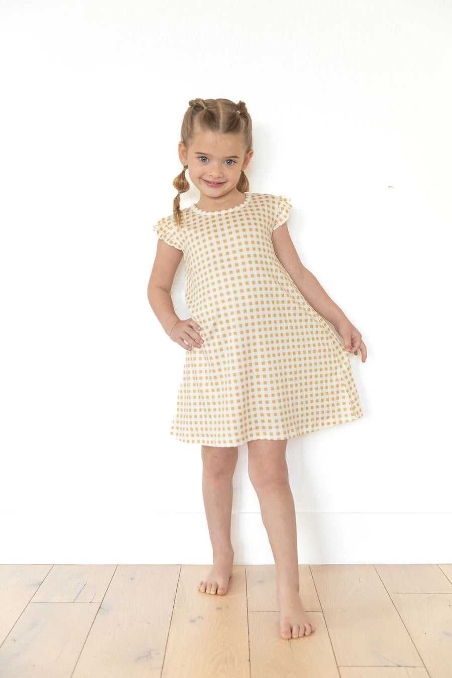 MUSTARD + CREAM GINGHAM | SLEEVE DRESS