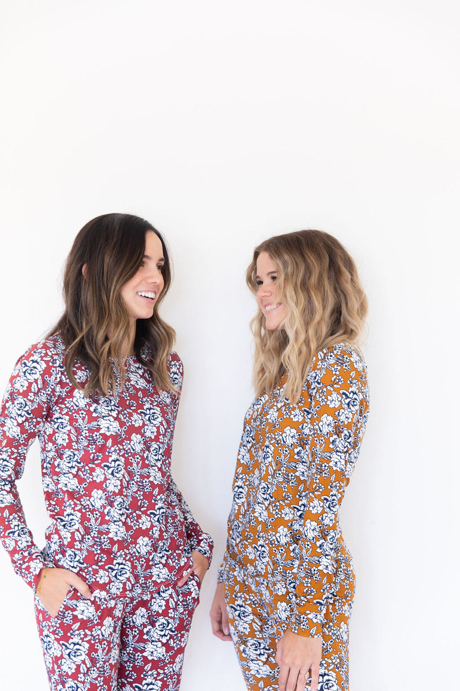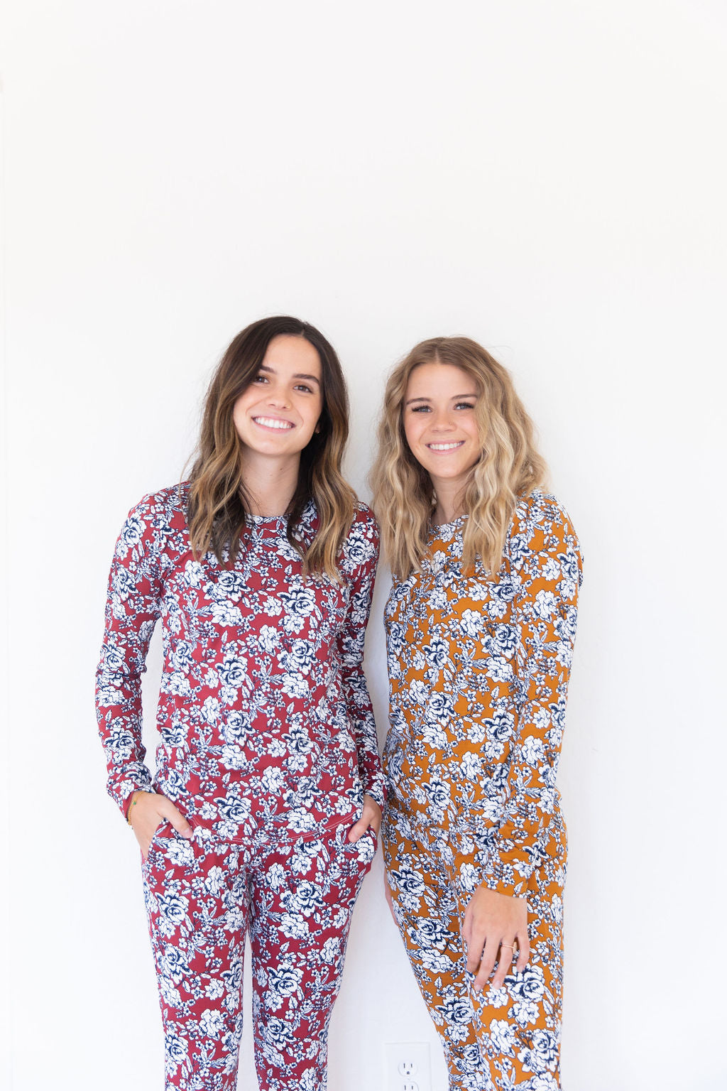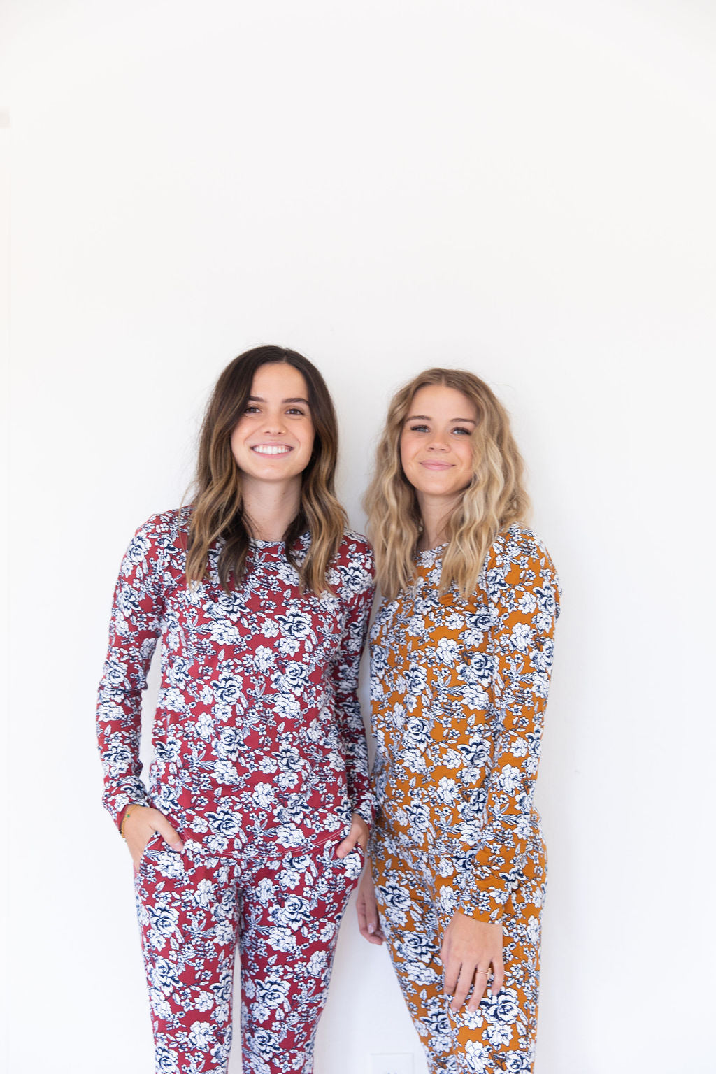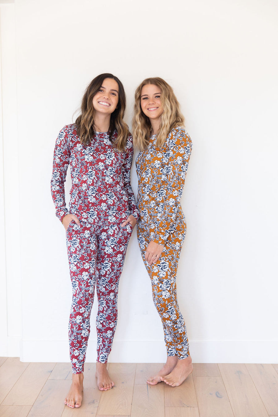 Dark Mustard + Navy Floral Women's Two Piece Set - Long Sleeve