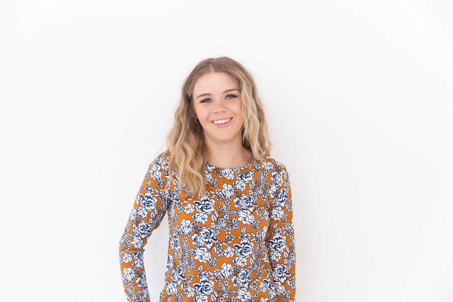 DARK MUSTARD + NAVY FLORAL | LONG SLEEVE