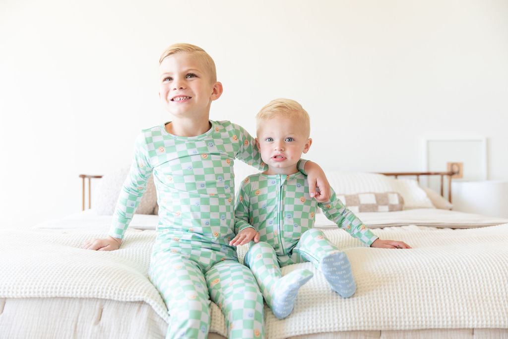 The Cozy Pajamas are made out of the same buttery soft jersey knit fabric as our blankets and swaddles.