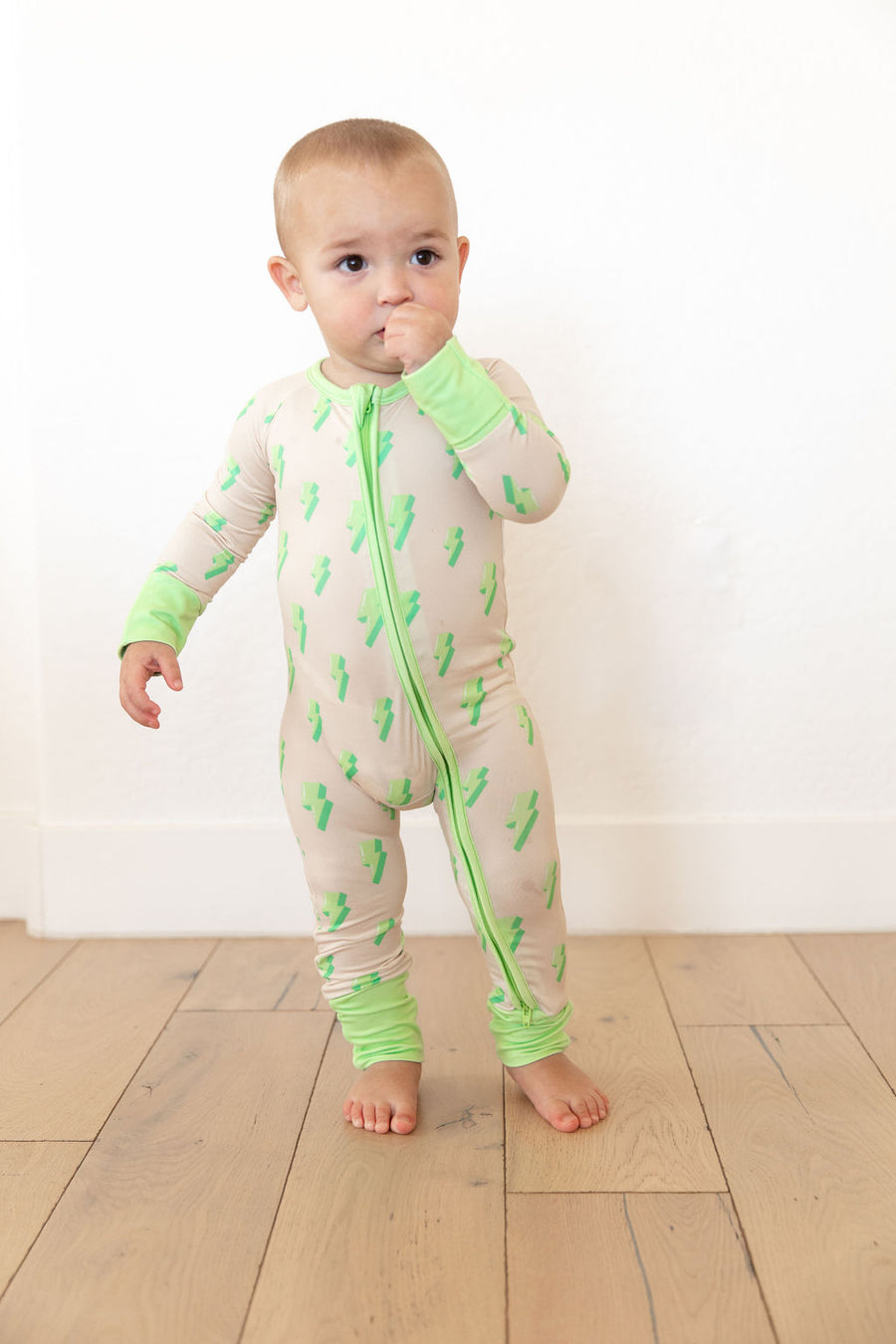 GREEN LIGHTNING BOLTS | ZIPPER ONE PIECE