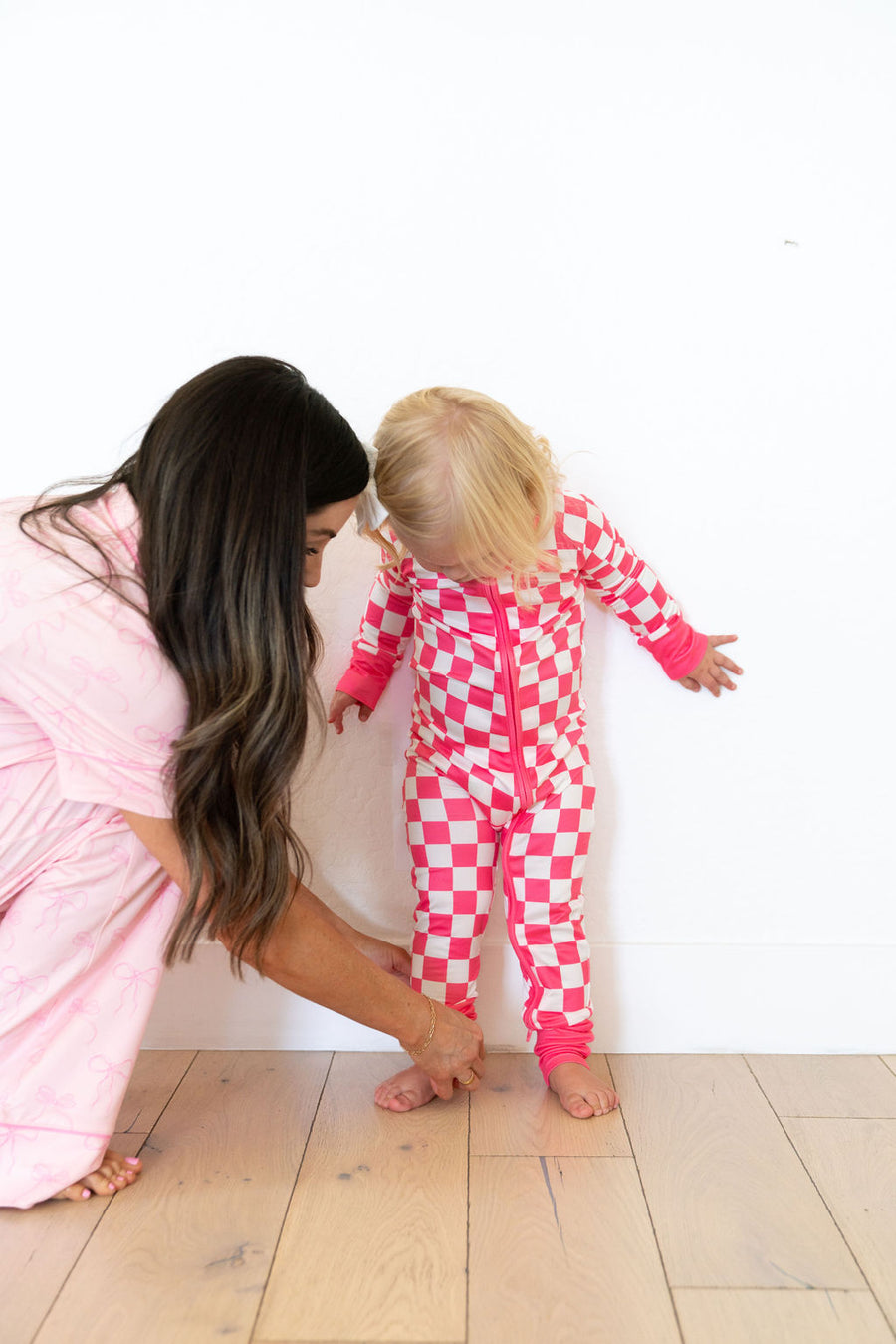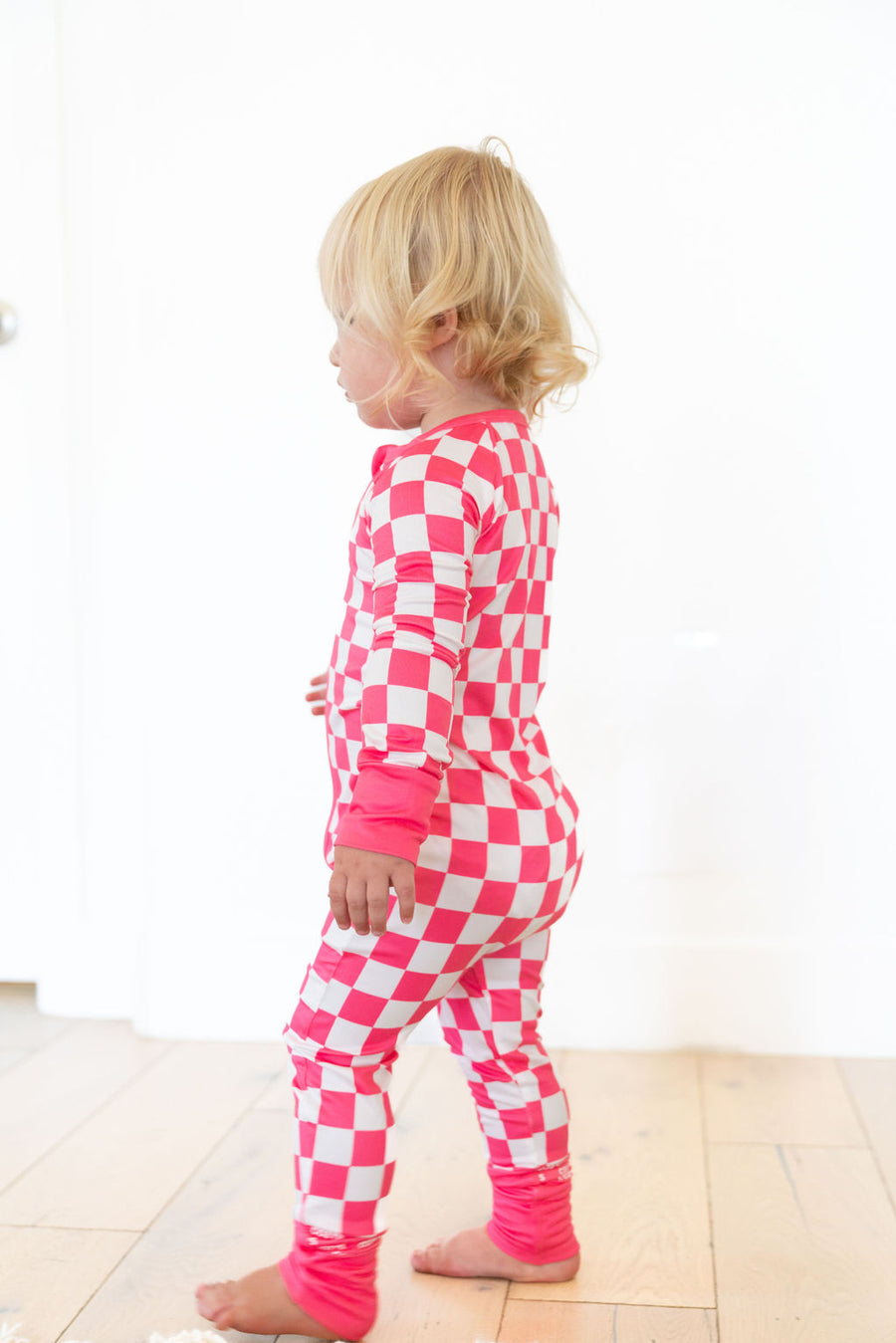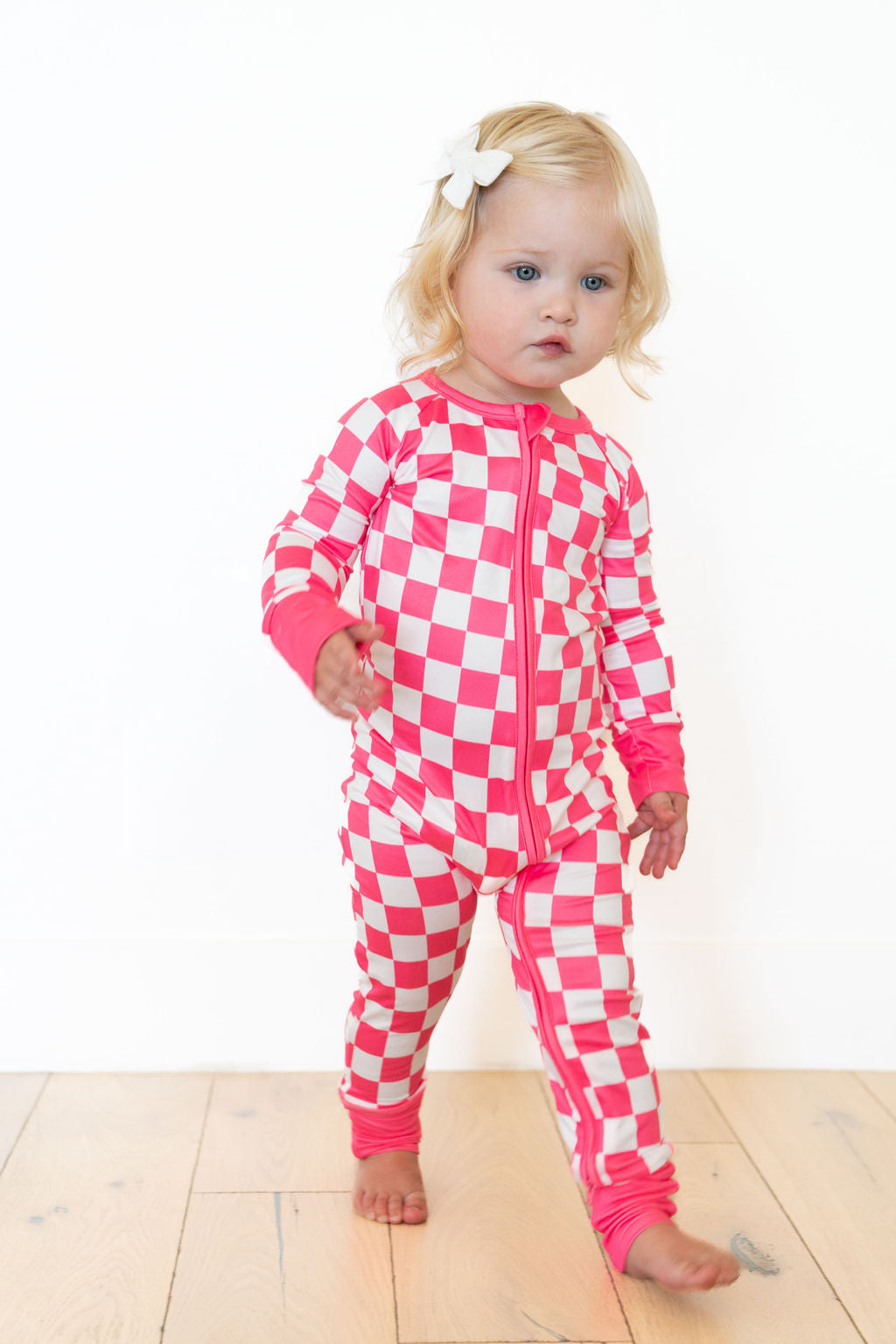 HOT PINK + WHITE CHECKER | ZIPPER ONE PIECE