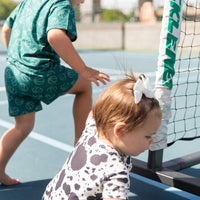 Our Cozys short sets are made out of the same buttery soft jersey knit fabric as our blankets and swaddles.