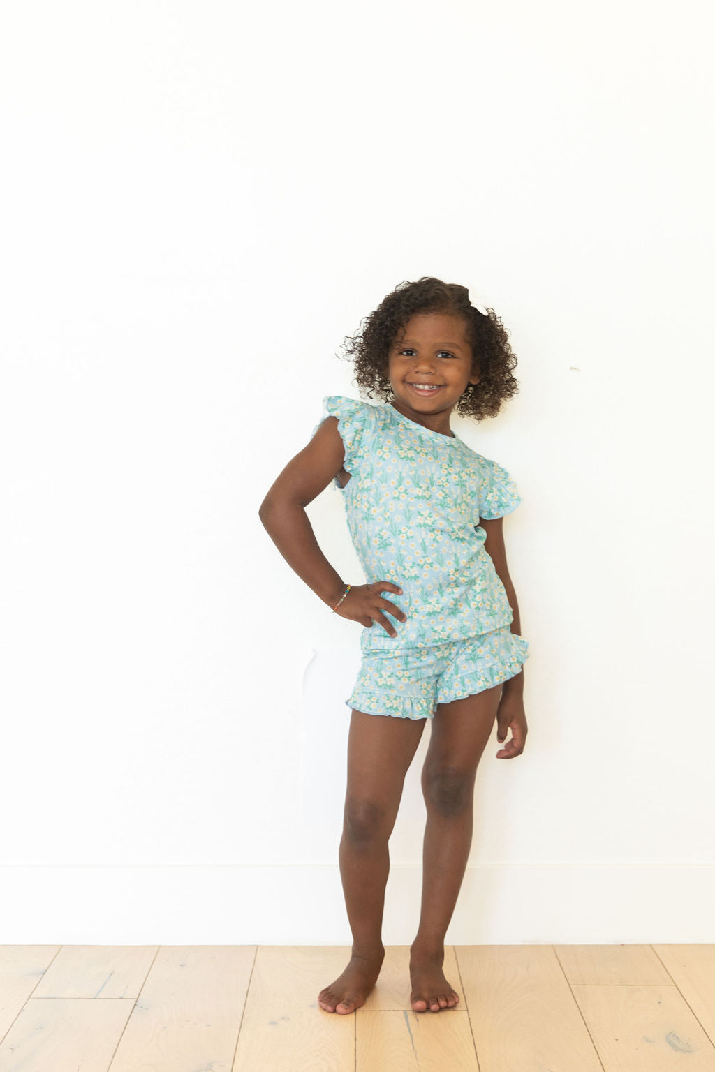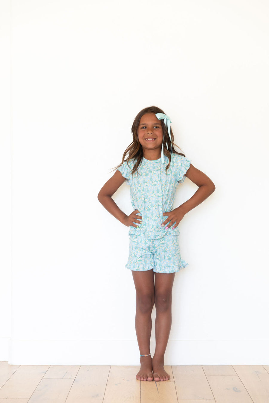 LIGHT BLUE DAISY FIELD | RUFFLE SHORT SET
