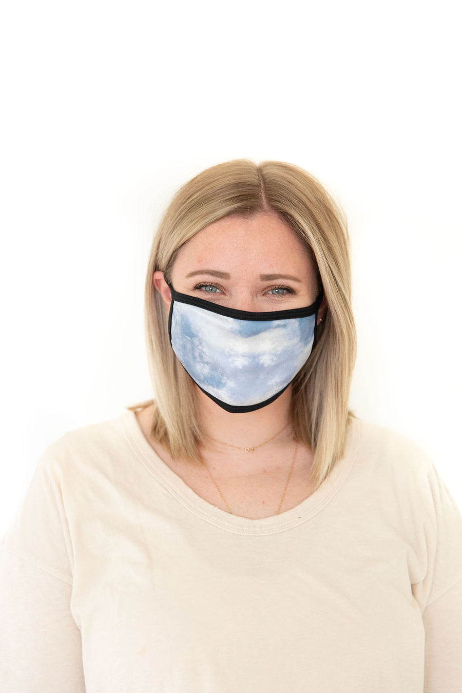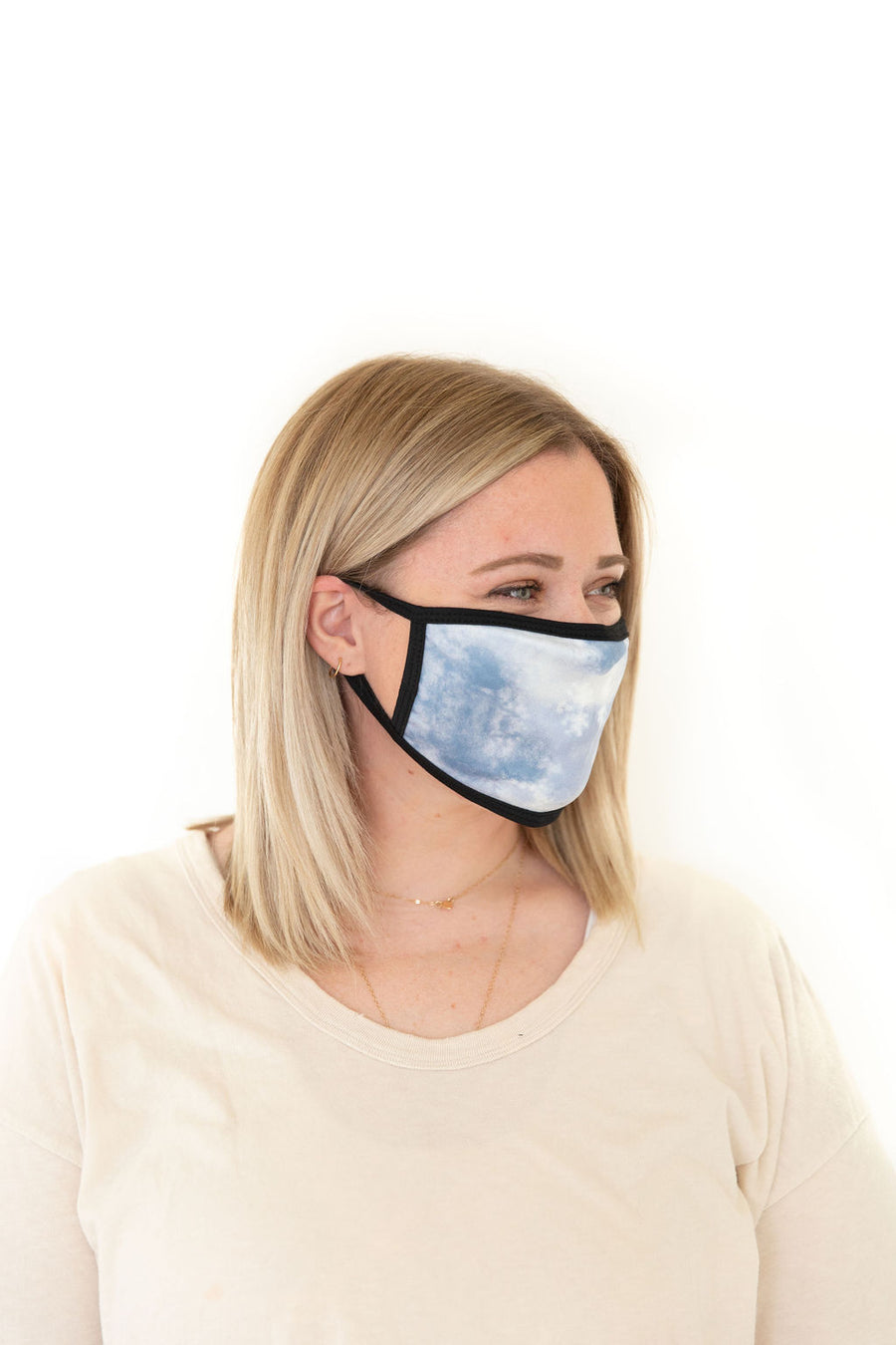 LIGHT BLUE + WHITE TIE DYE | ADULT FACE MASK