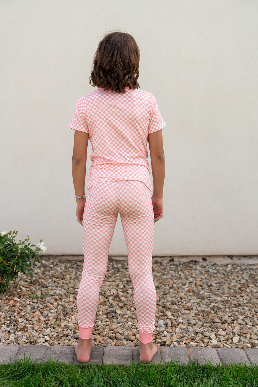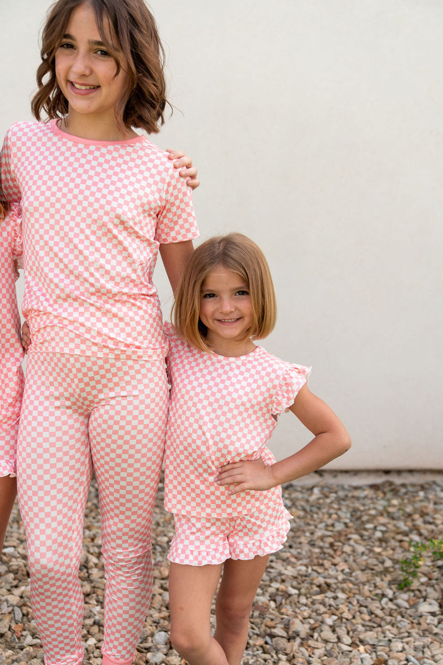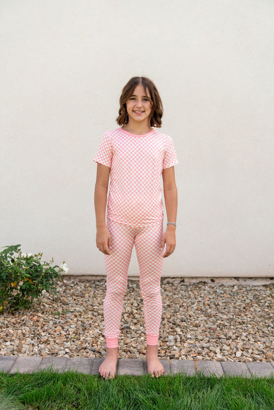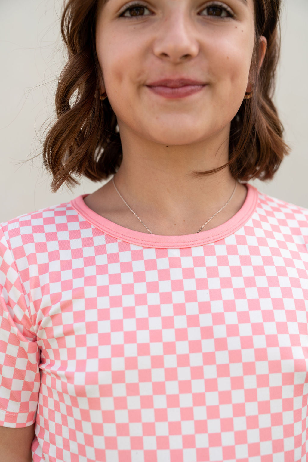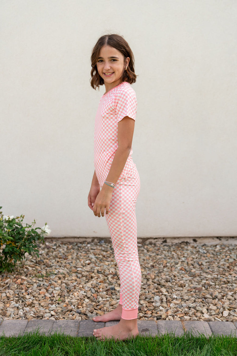 LIGHT PINK + WHITE CHECKER | SHORT SLEEVE PAJAMA SET