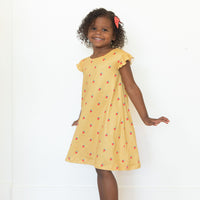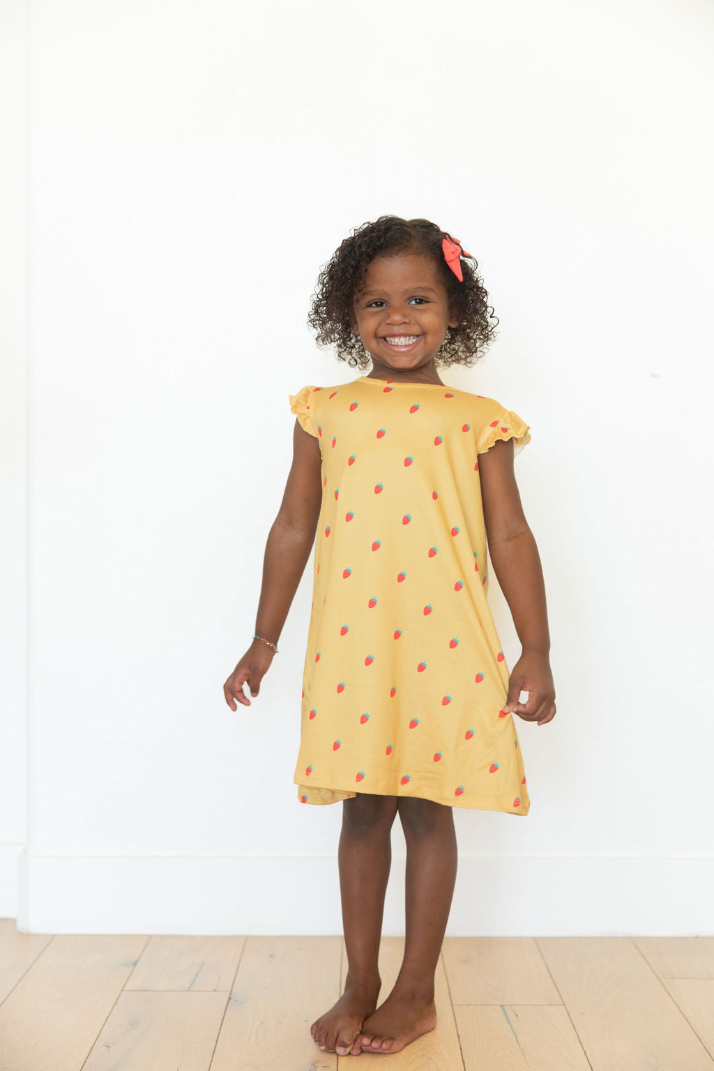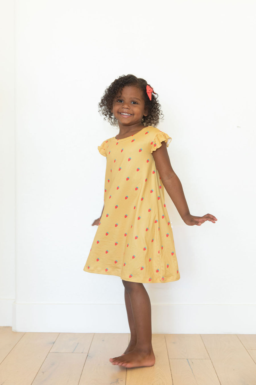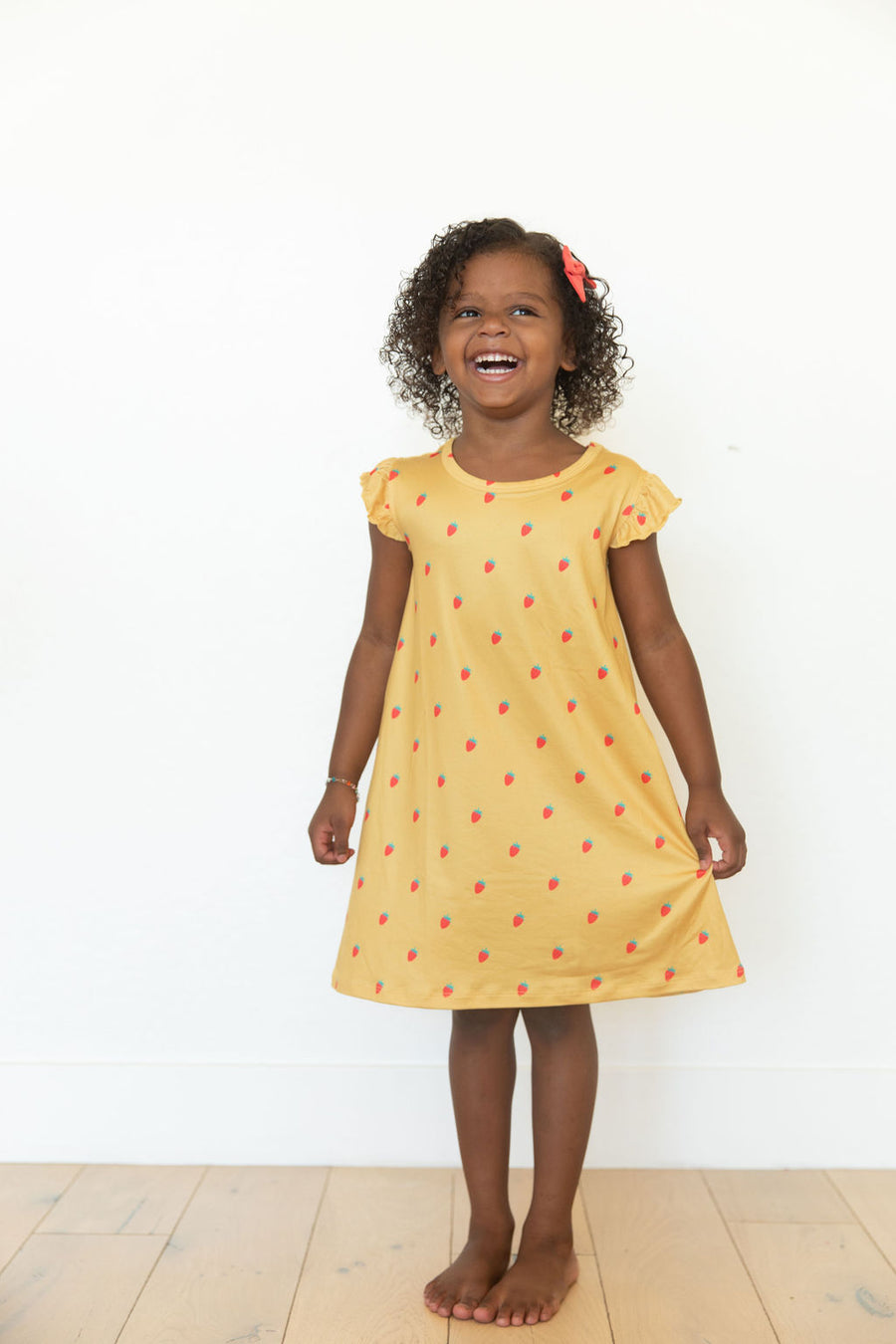 MUSTARD YELLOW STRAWBERRIES | SLEEVE DRESS