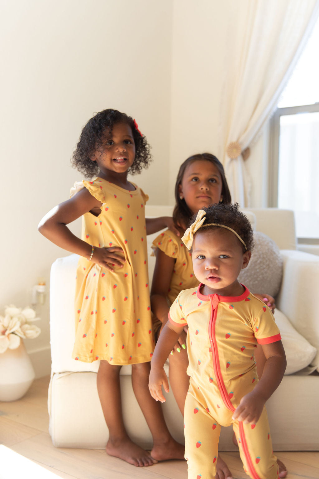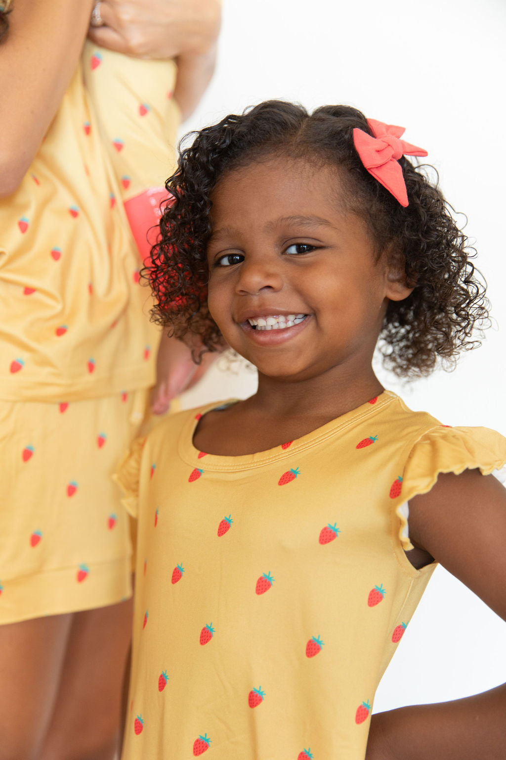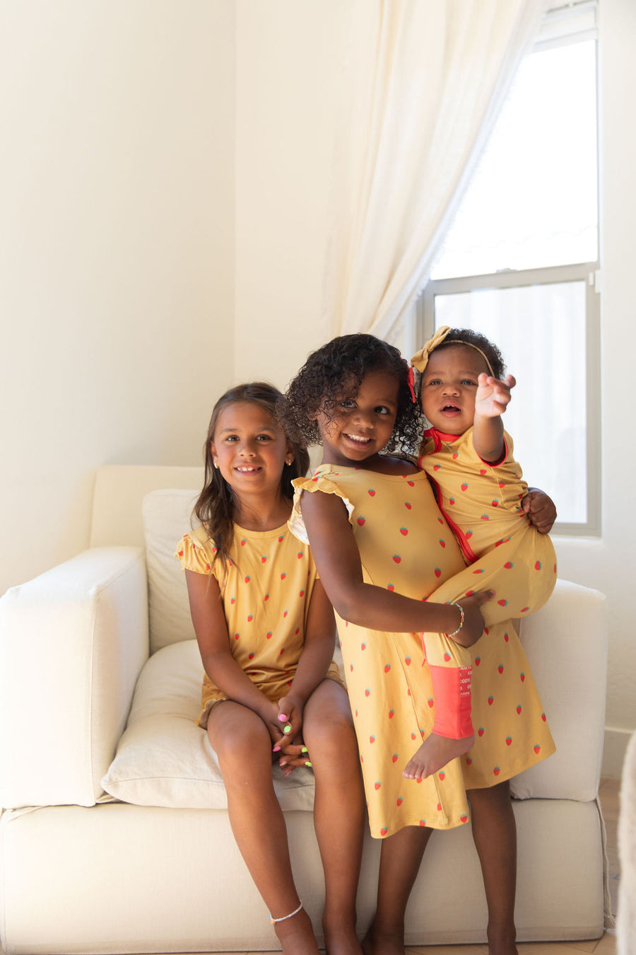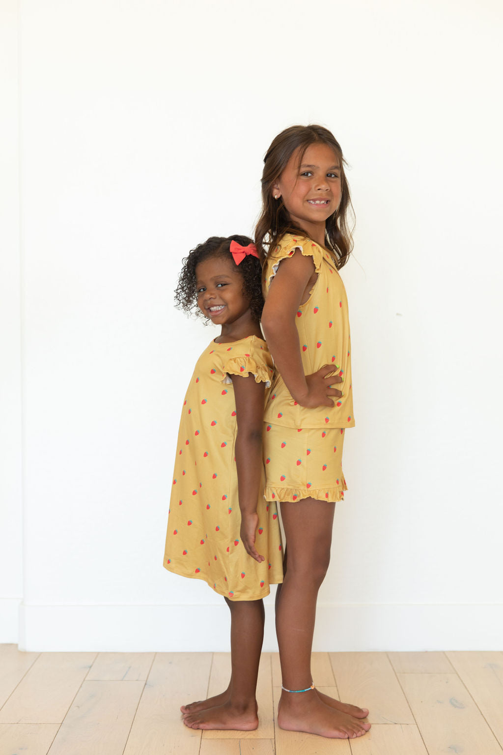 MUSTARD YELLOW STRAWBERRIES | SLEEVE DRESS