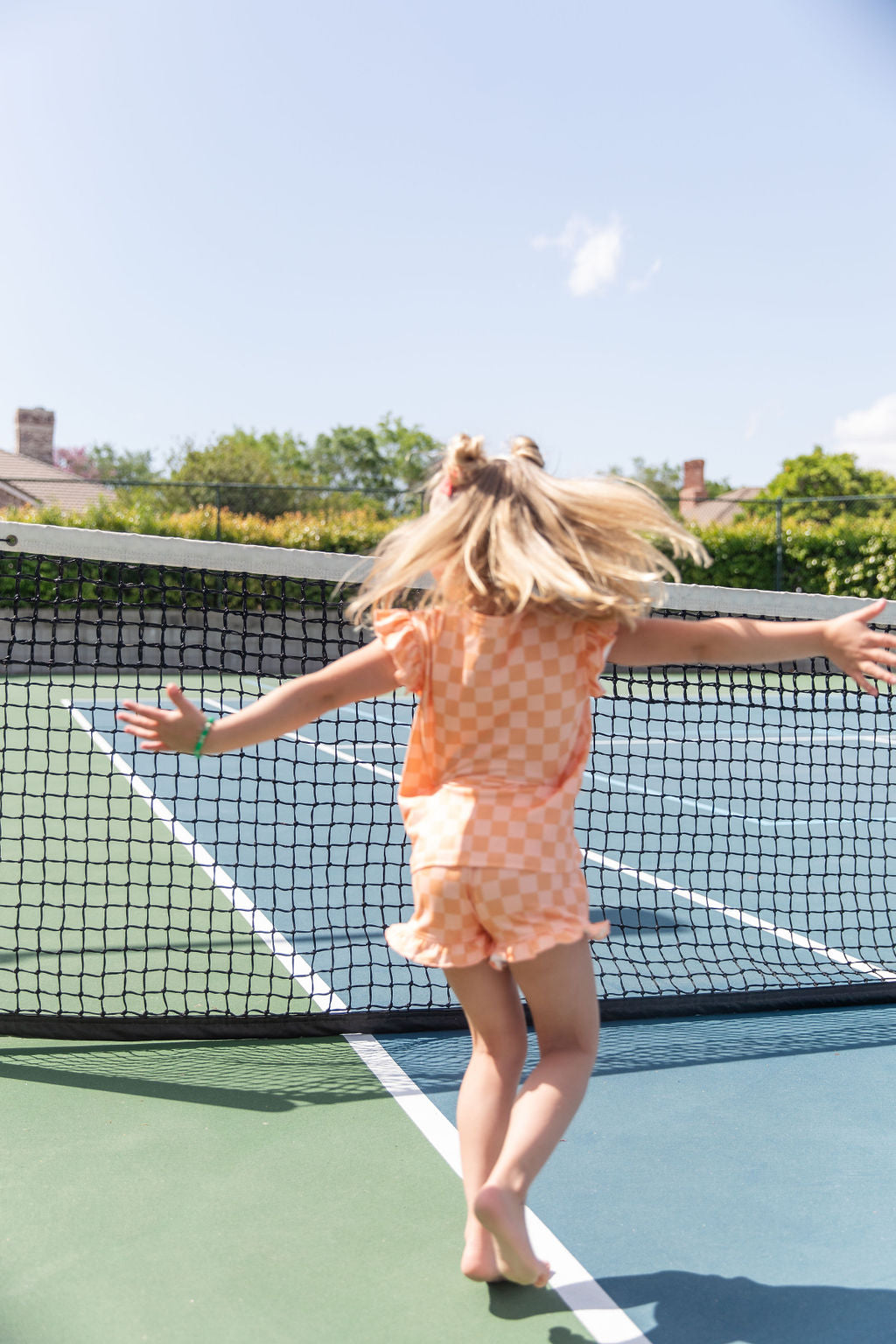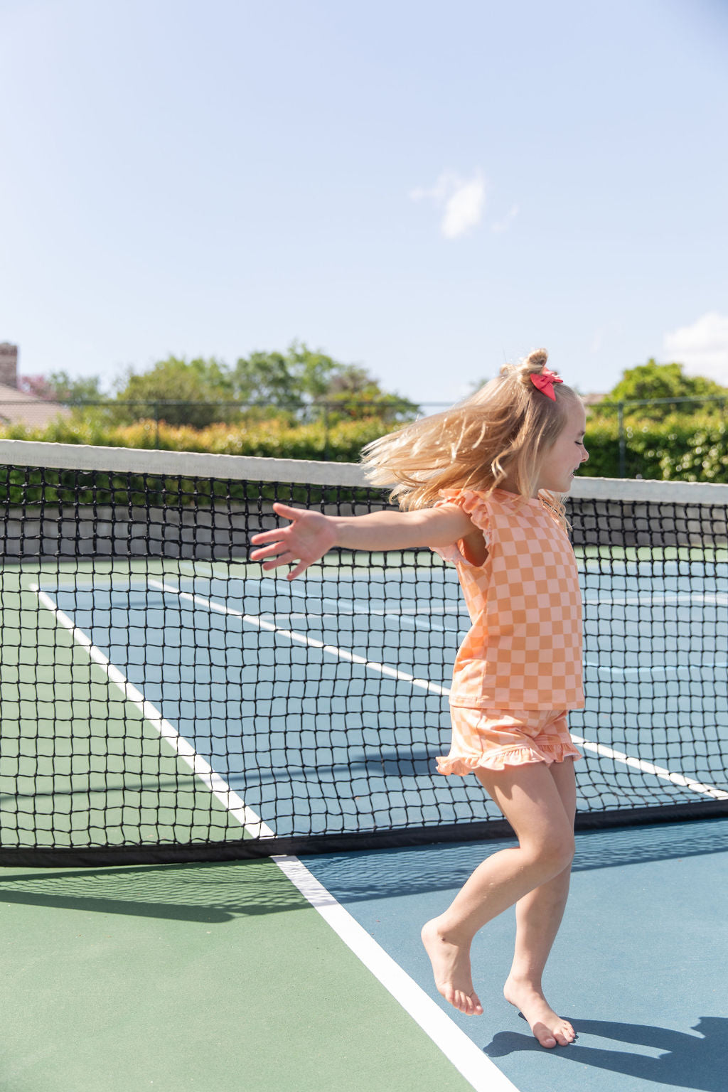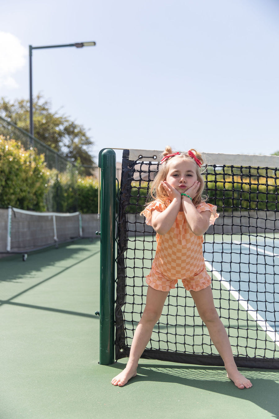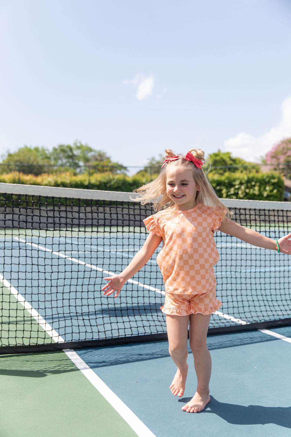 ORANGE + PEACH CHECKER | RUFFLE SHORT SET