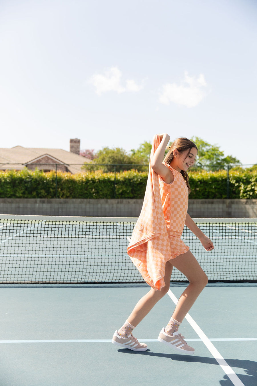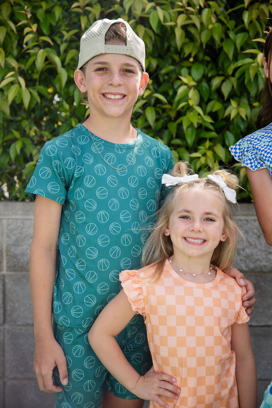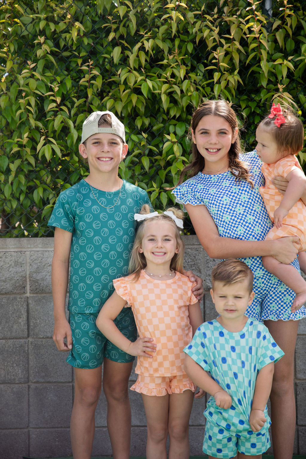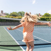 ORANGE + PEACH CHECKER | RUFFLE SHORT SET