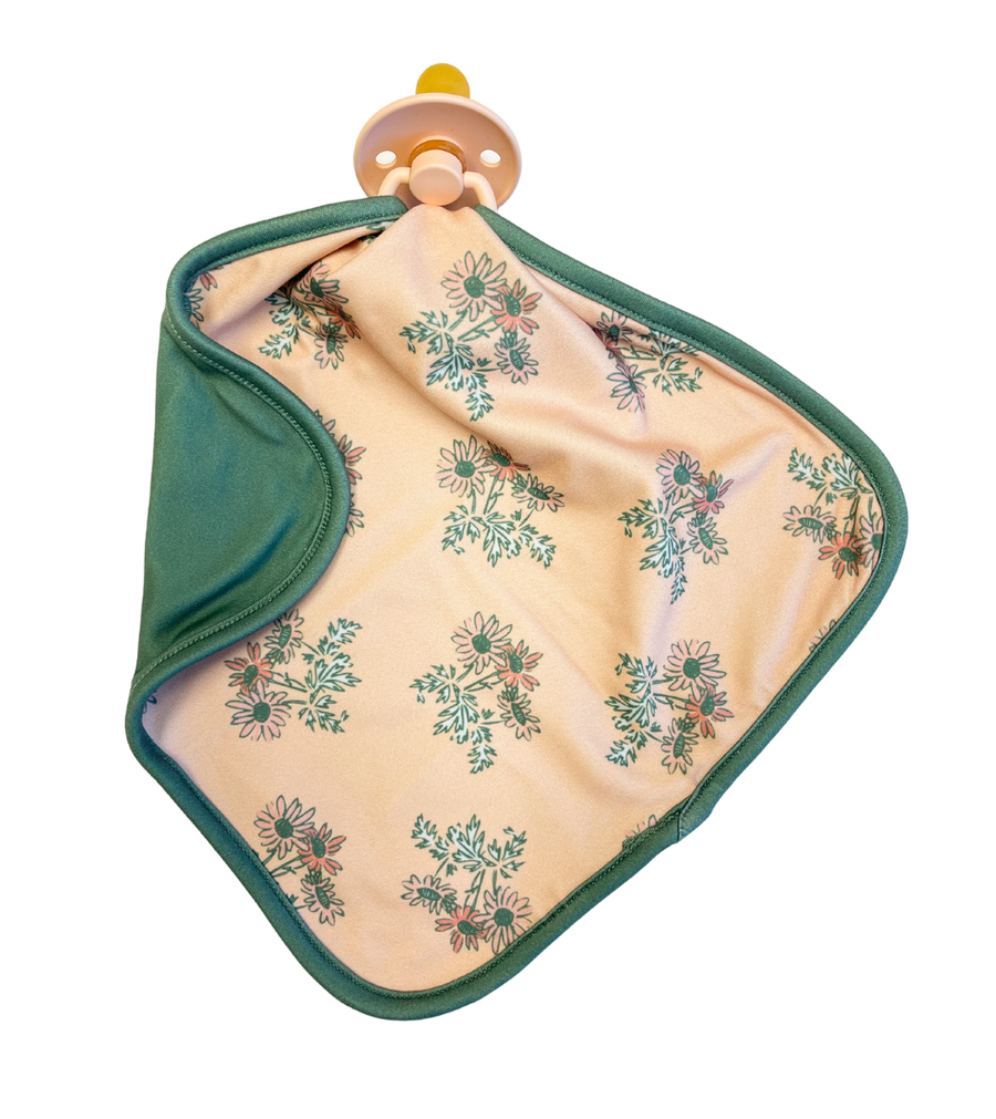 Our Cozys lovies are double sided and can be attached to any pacifier, toy or teether.