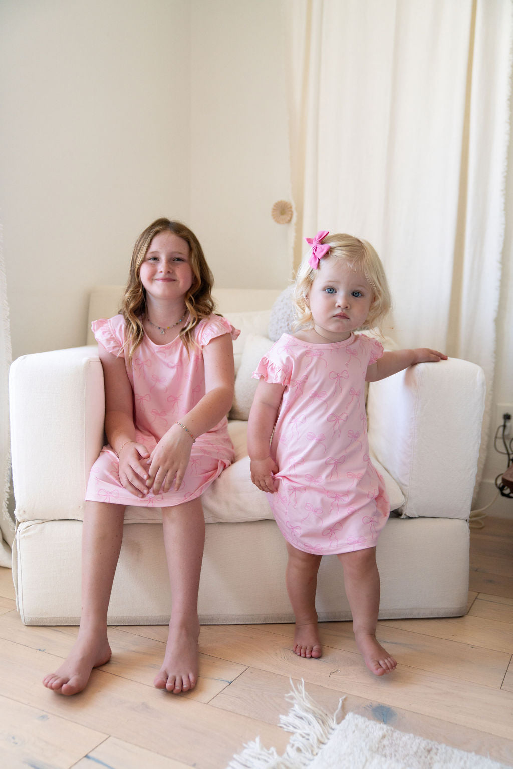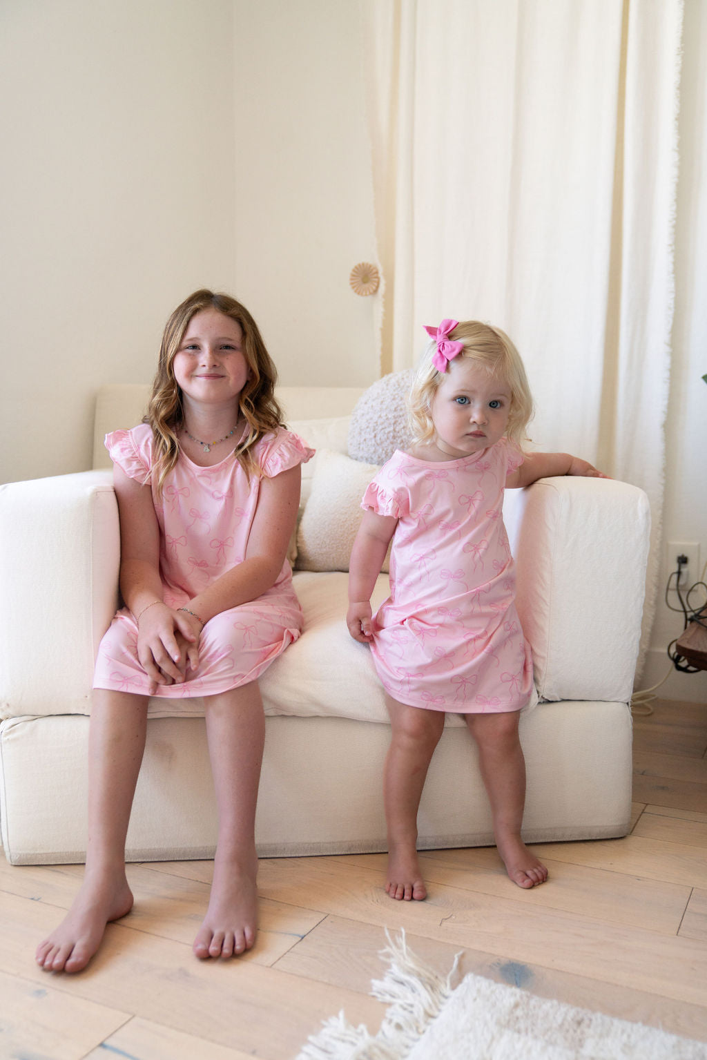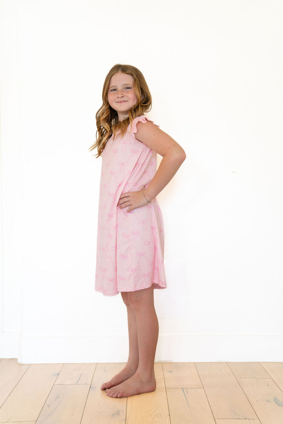 PINK BOWS | RUFFLE SLEEVE DRESS
