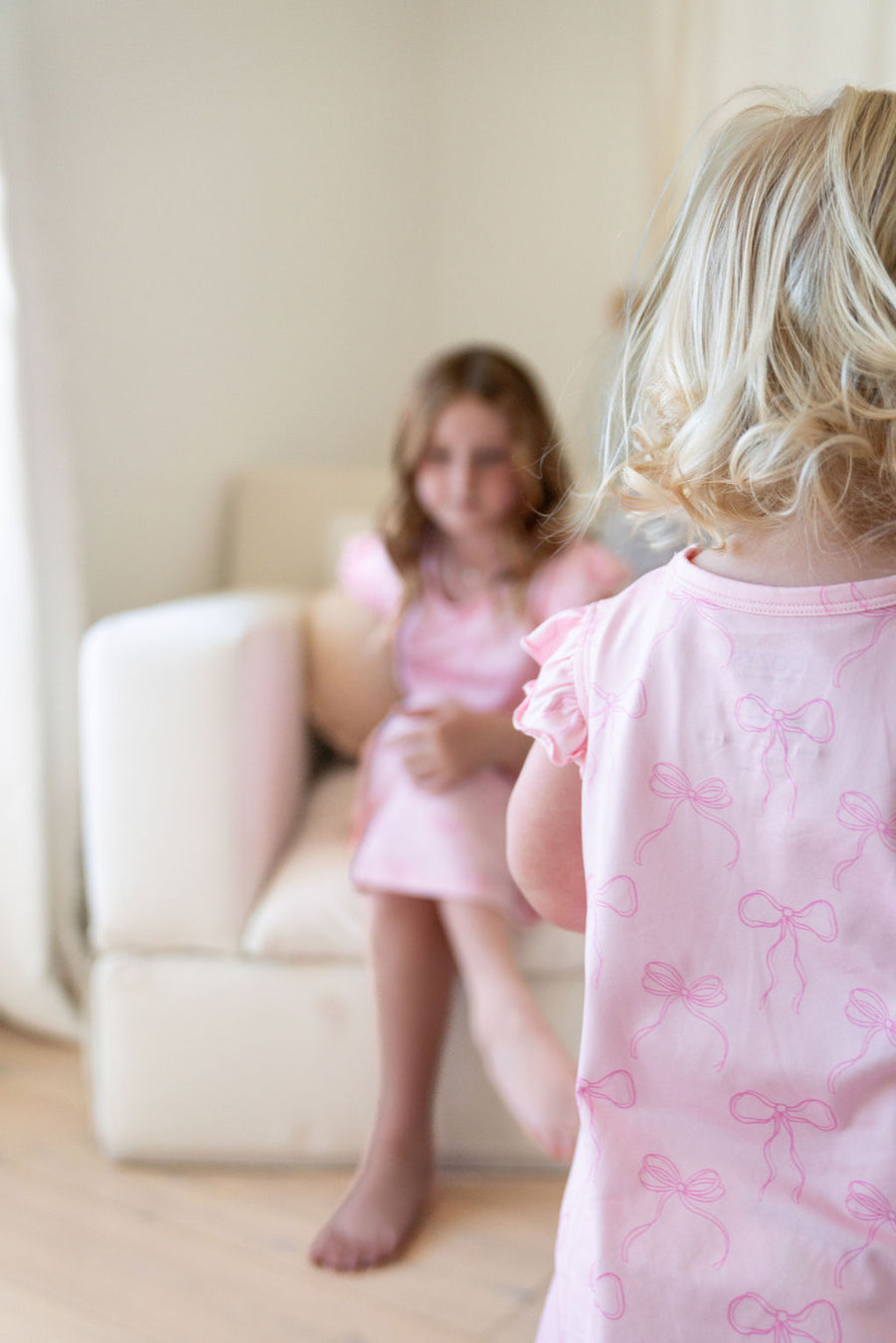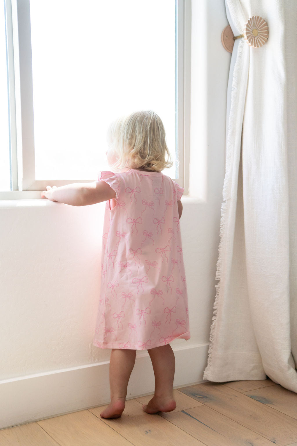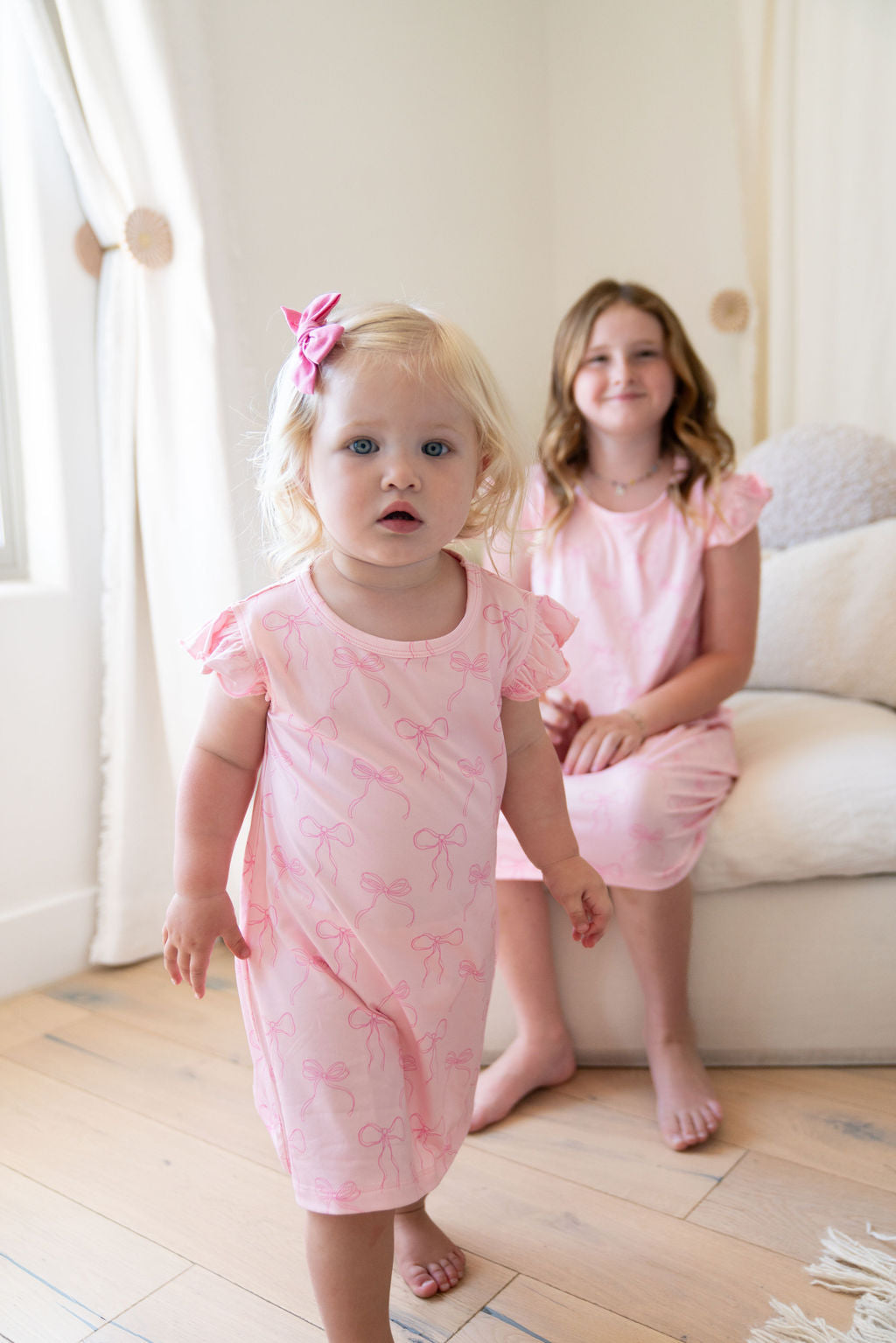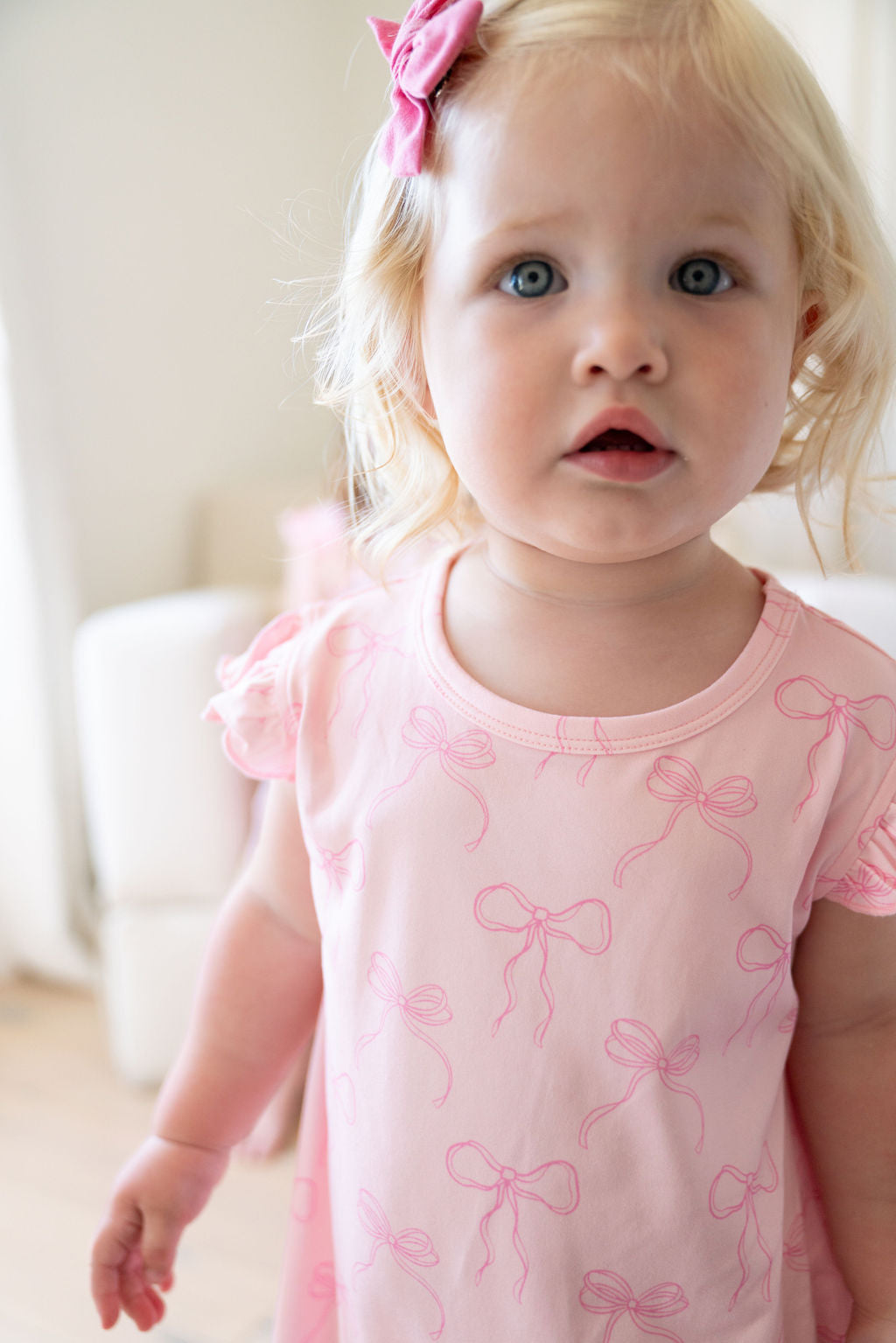 PINK BOWS | RUFFLE SLEEVE DRESS