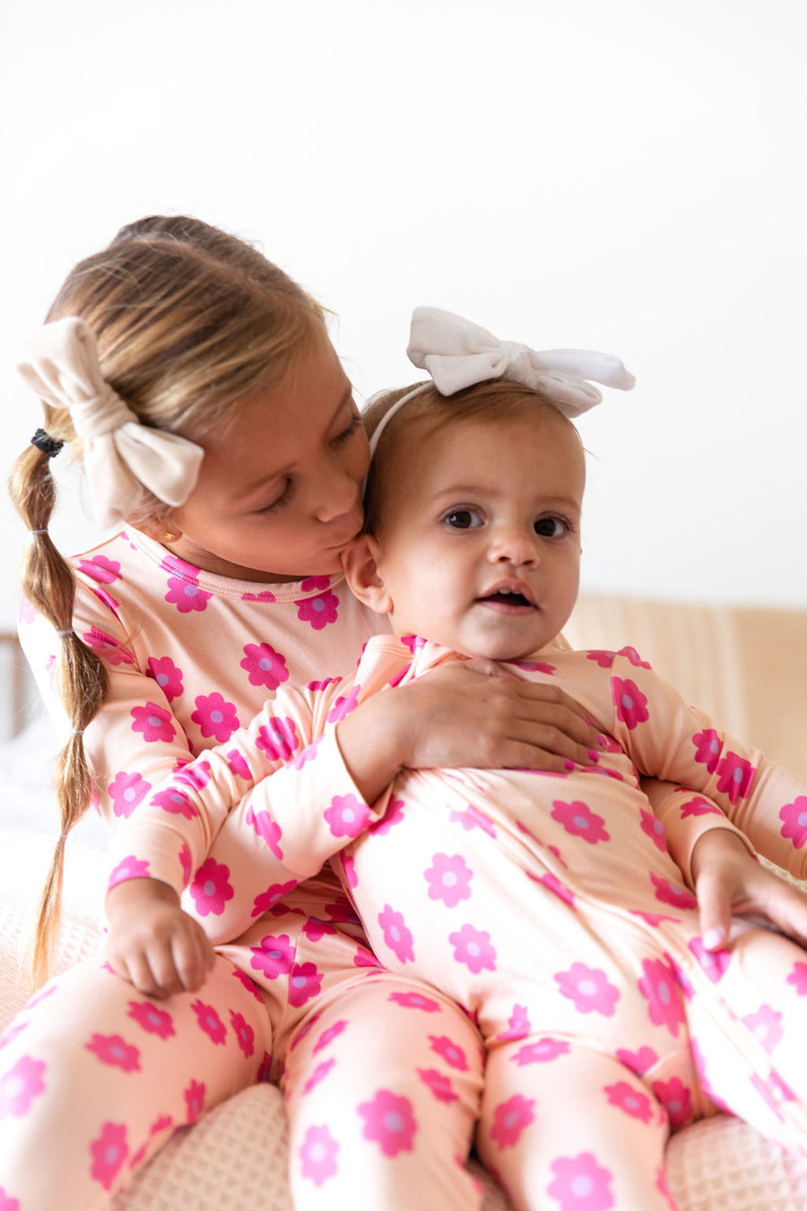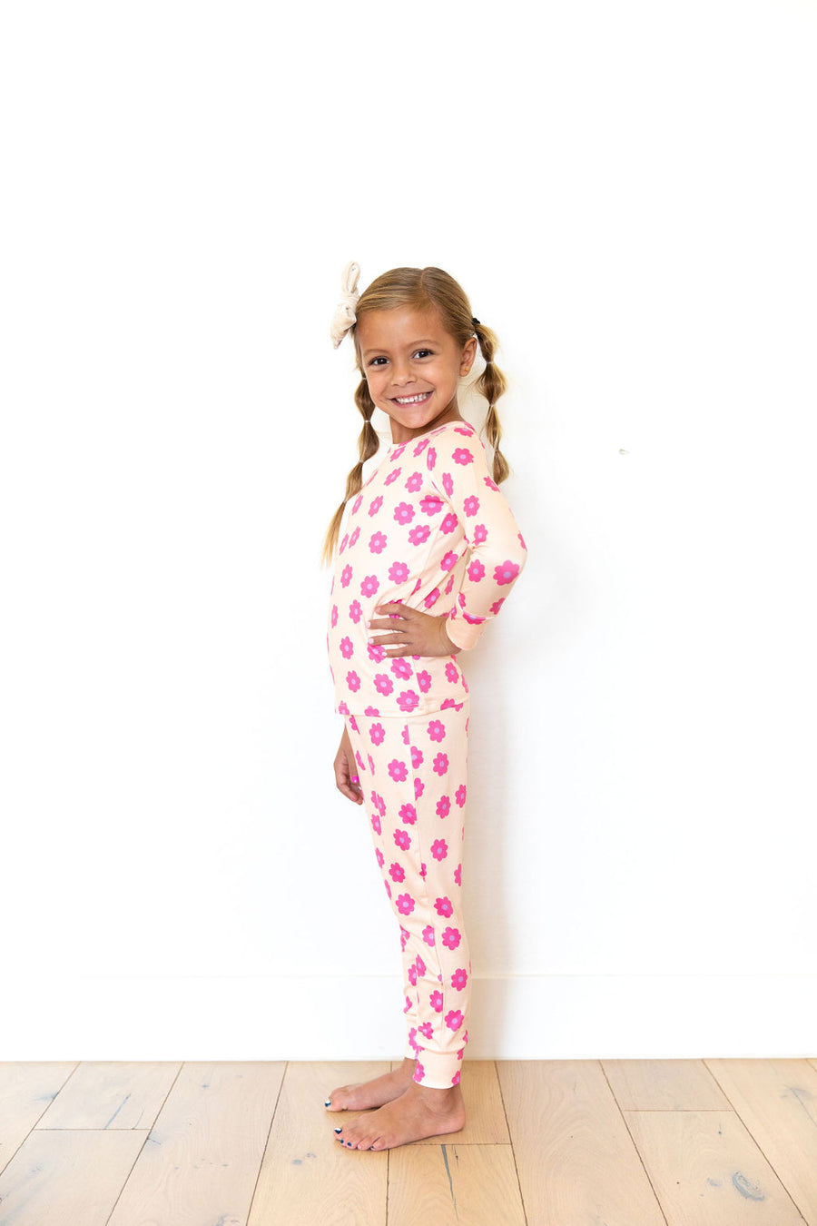 The Cozy Pajamas are made out of the same buttery soft jersey knit fabric as our blankets and swaddles.