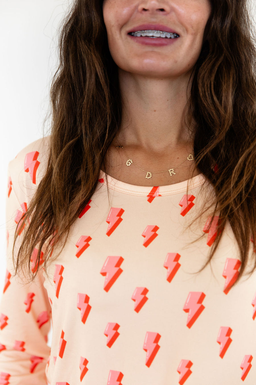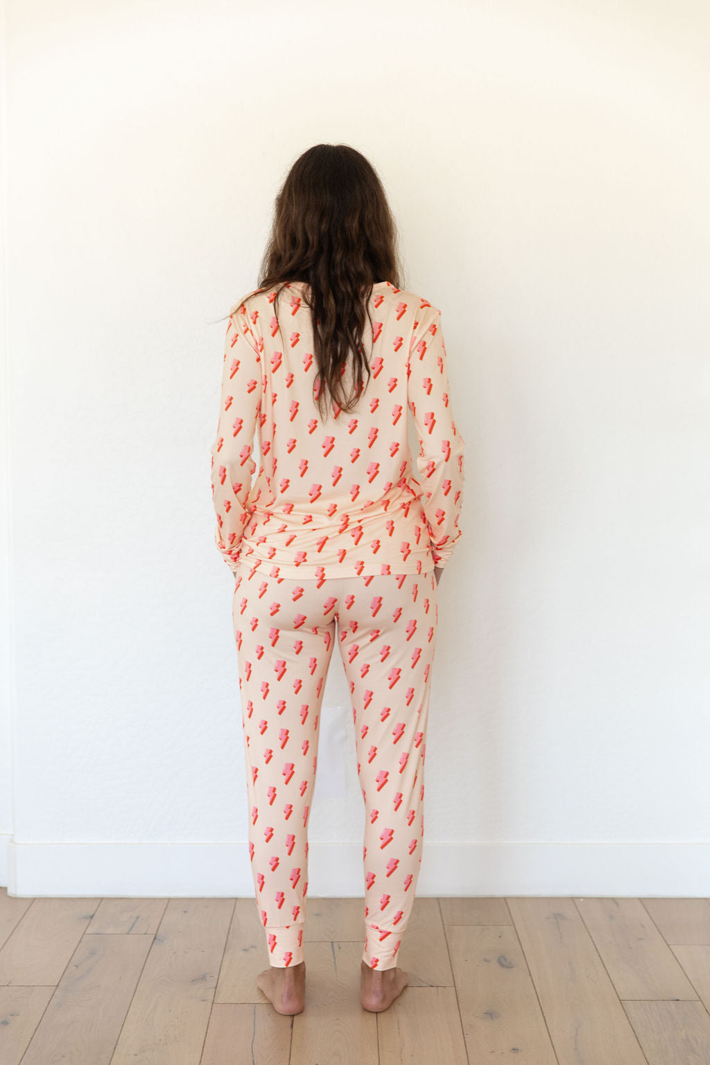 PINK LIGHTNING BOLTS WOMEN'S TWO PIECE SET | LONG SLEEVE