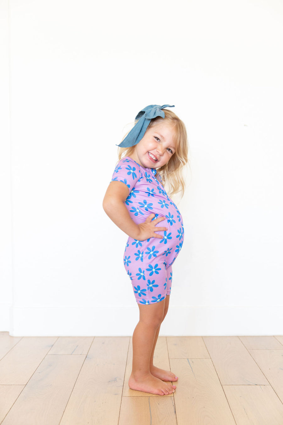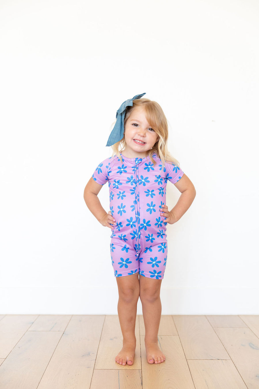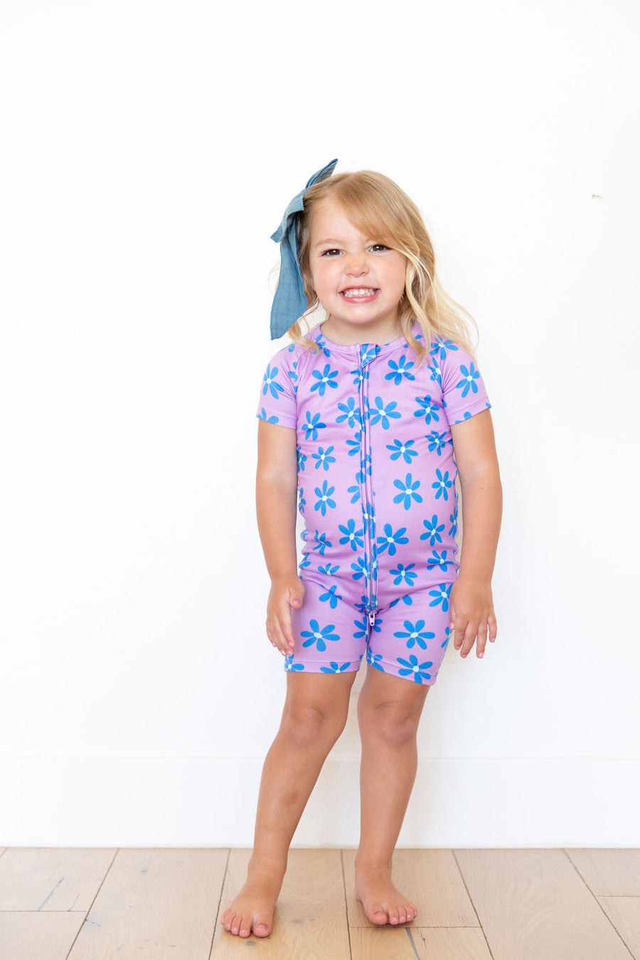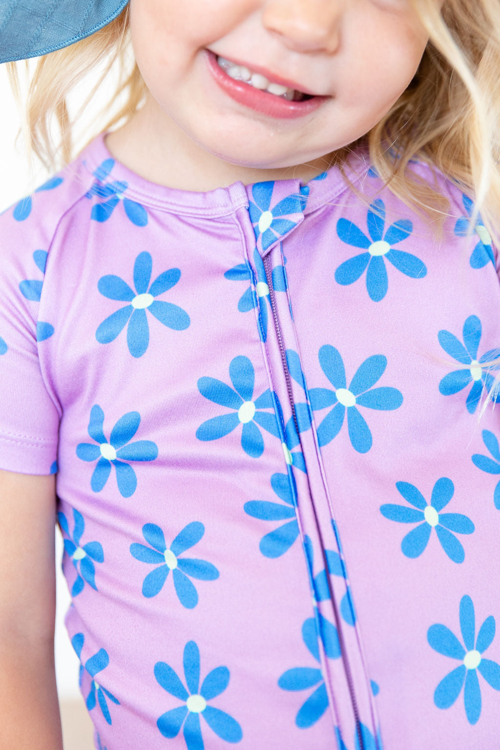 PURPLE + BLUE DAISY | SHORT ZIPPER ONE PIECE