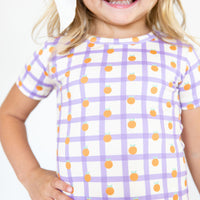 PURPLE GRID + ORANGES | SHORT SLEEVE PAJAMA SET