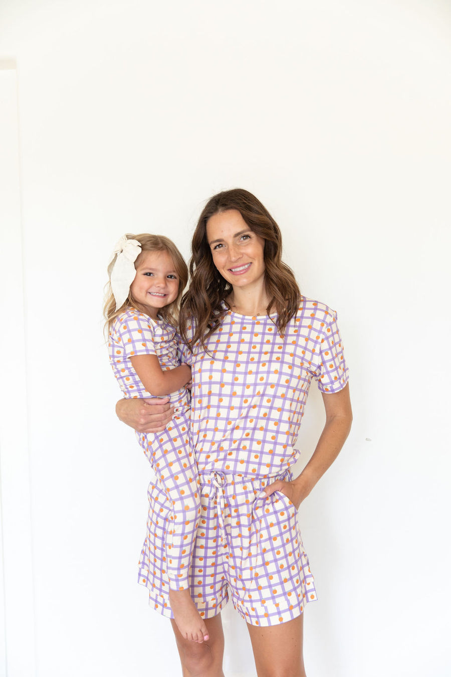 PURPLE GRID + ORANGES | WOMEN'S SHORT SET