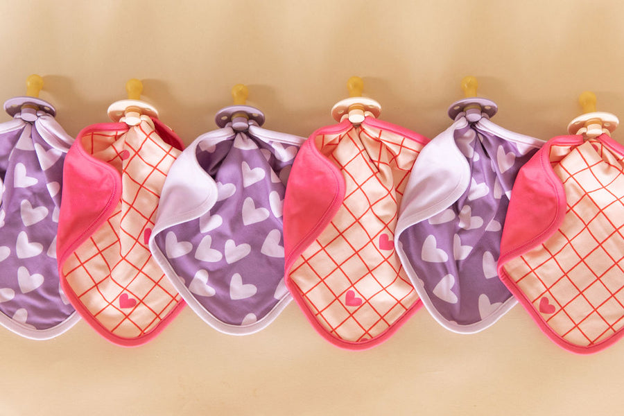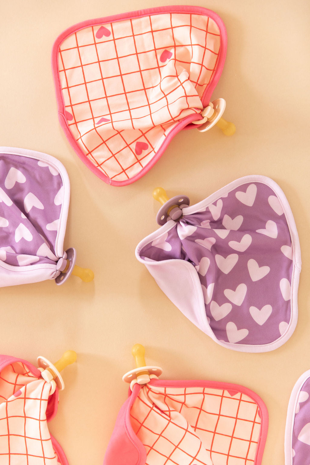 Our Cozys lovies are double sided and can be attached to any pacifier, toy or teether.